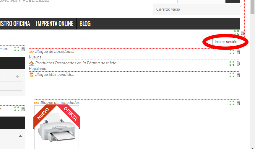 adristore Posted August 22, 2014 Author Share Posted August 22, 2014 Como te comentaba en el inicio de la discusion, abro el LIVE EDIT pero no tengo opcion del modulo INICIAR SESION para moverlo como con los demás módulos, que tienen un simbolo de eliminar modulo y otro con las flechas verdes para moverlo de sitio. Te adjunto imagen del LIVE EDIT para que lo compruebes. Gracias Link to comment Share on other sites More sharing options...