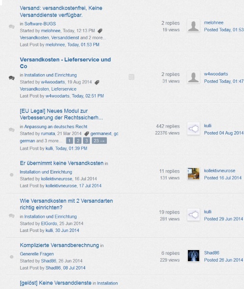 melohnee Posted August 22, 2014 Share Posted August 22, 2014 Hallo, nach dem prestashop 1.6.0.2 Setup habe ich einen CSV Massenimport von Produkten durchgeführt, die funktionieren und sich bestellen lassen (zwei Kostenpflichtige Versanddienste, ein kostenloser für Selbstabholung für alle Produkte) Wenn ich nun manuell über das Admin Dashboard neue Produkte anlege, treten folgende Phänomene auf: shopping cart modul zeigt an "Versand: versandkostenfrei" wenn ein neues Produkt in den Warenkorb aufgenommen wird Checkout Carrier (vierter Schritt im Bestellprozess "Versand") schreibt als Fehler "Keine Versanddienste verfügbar" Das "Keine Versanddienste verfügbar" Phänomen tritt dann auch auf, sobald ein manuell angelegtes Produkt im Warenkorb ist - es lässt sich dann nichtsm ehr bestellen test URLs: neu angelegtes, fehlerhaftes Produkt https://www.teenage-riot.com/nieten/27121-500-stk-kegelnieten-rund-rosa-lackiert.html via CSV importiertes, funktioierendes Produkt: https://www.teenage-riot.com/b%C3%BCcher/6000-folta-fur-john-travolta-frontal-ep-franz-hermann-reischl-9120006750059.html Es war mir leider nicht möglich, aussagekräftige Logfiles zu generieren. Es scheint also so, dass die Standardkonfiguration für non-CSV Produkte fehlerhaft ist. Ich habe die Voreinstellungen überprüft und auch einen neuen Versanddienst für alle Zonen für Gratiszustellung angelegt, jedoch leider erfolglos. Bitte um Unterstützung, danke! LG Andreas Link to comment Share on other sites More sharing options...