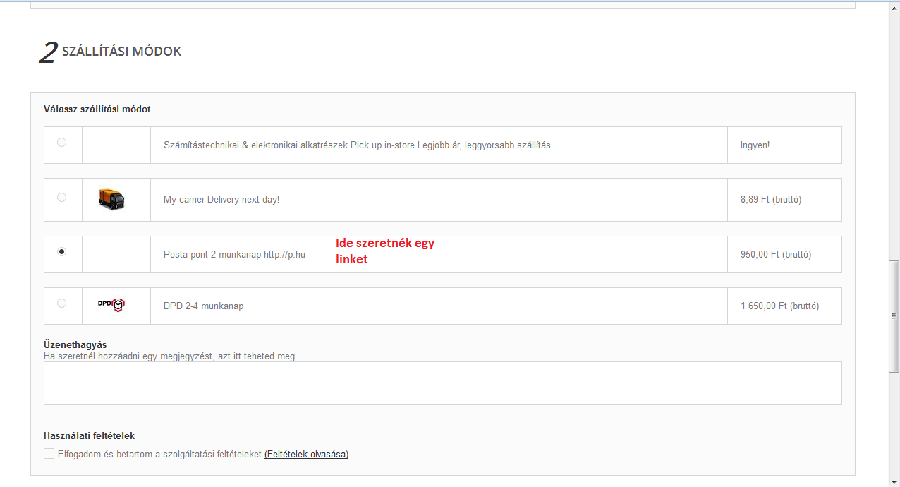 Ha a listázandó carrier id-je (vagy neve, hiszen az már adott változóban) megegyezik a postával, akkor a nevet egészítse ki egy a href-el.