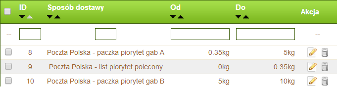 Witam. Chciałbym żeby w bloku koszyka pojawiał się koszt dostawy w zależności od wagi. W przewoźnikach dałem: