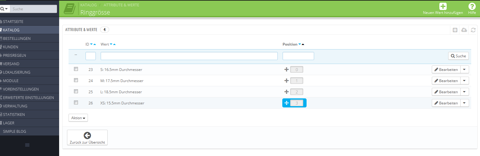 Ich verkaufe in meinem Shop u.a. Ringe. Bis vor Kurzem hatte ich drei Grössen: S, M, L