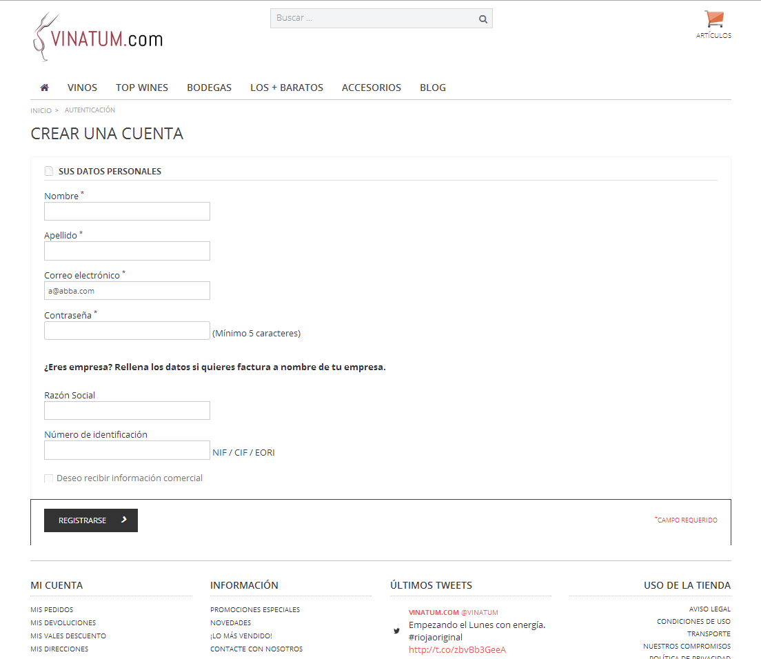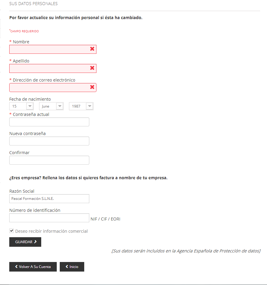 Softdesire Posted August 27, 2014 Share Posted August 27, 2014 (edited) Muy buenos días, He estado buscando en el foro y no he encontrado ninguna incidencia parecida o solucionada, así que me dedico a detallarla por si alguien nos puede echar una mano. Para ubicarnos, hemos creado una página con Prestashop en su última versión 1.6, con un plantilla personalizada. Prestashop no está nada enfocado a los clientes como empresa, o por lo menos eso nos parece, así que hemos añadido (modificado) dos campos a la hora de registrarse, tal y como aparece en la foto que adjunto. El campo razón social es realmente el de "Company/Empresa" y el de "Número de Identificación/DNI" lo hemos cambiado por CIF; estos dos campos aparecen también ahora en "Sus datos personales" (identity.tpl). Copiamos las dos nuevas variables del código fuente del apartado "Añadir nueva dirección", en dónde ya no aparecen estas dos, es decir de adress.tpl a autentication.tpl Ahora llega el problema: La Razón Social se guarda sin problemas pero el Número de identificación no hay manera de hacer que se guarde. Agradecería vuestros comentarios y ayudas. Un saludo y gracias de antemano. Edited August 27, 2014 by Softdesire (see edit history) Link to comment Share on other sites More sharing options...