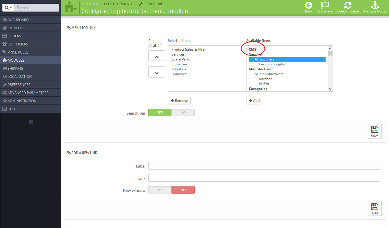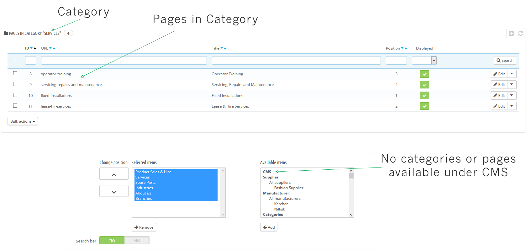masonse Posted August 28, 2014 Share Posted August 28, 2014 (edited) I have Prestashop 1.6.0.8 and in the Top Horizontal Menu my CMS categories or CMS pages do not display as Available Items so I can not add them to the menu. If I add a CMS category as a link instead it only shows that Category it doesn't display the child cms pages underneath and I can't get round this as it isn't possible to add links as child categories only parent! Edited August 28, 2014 by masonse (see edit history) Link to comment Share on other sites More sharing options...