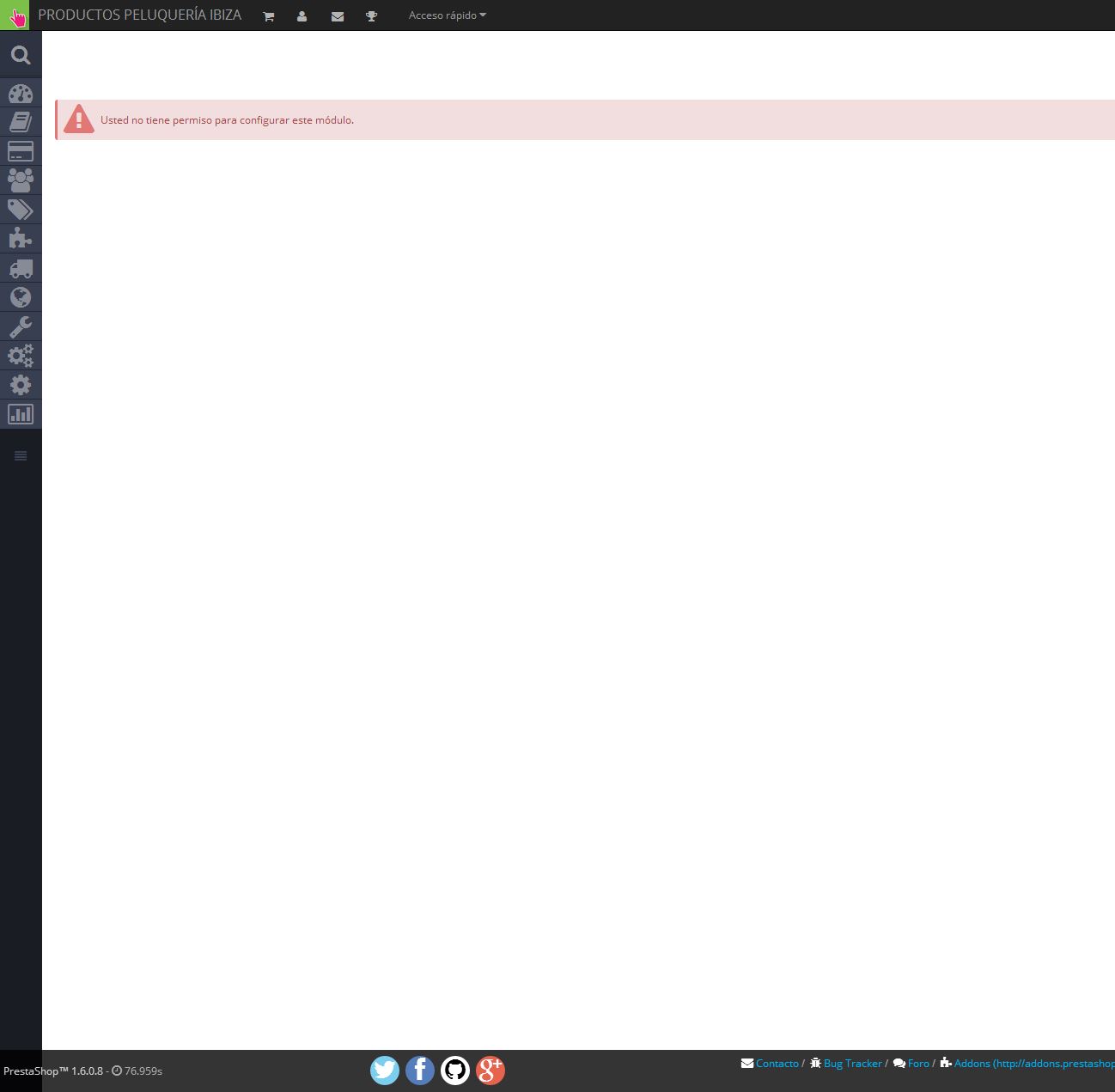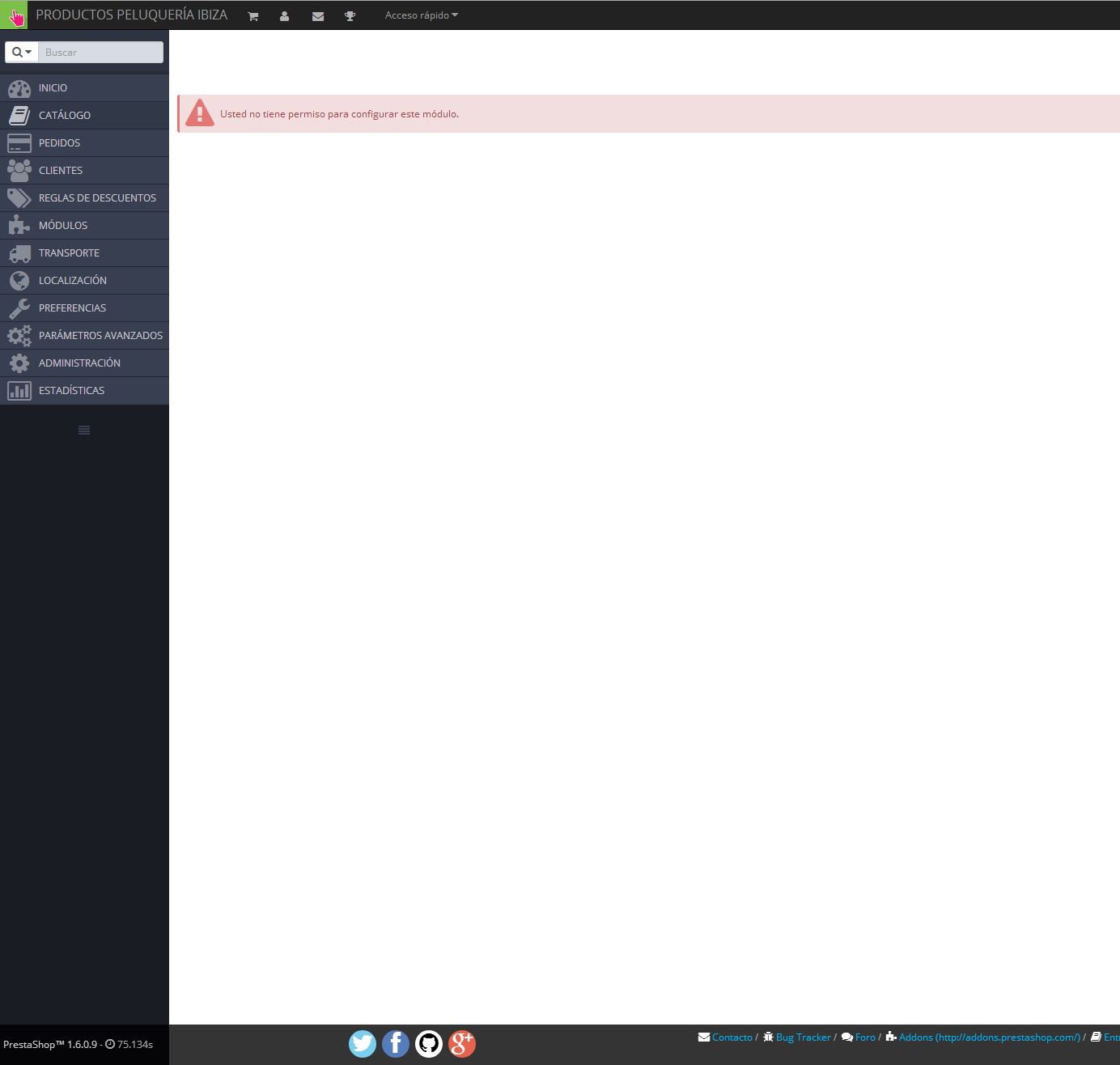 Krisbi Posted August 29, 2014 Share Posted August 29, 2014 Hola a todos: Veréis, no me deja acceder a los módulos para configurarlo usando la cuenta de superadmin, me pone que "Usted no tiene permiso para configurar este módulo." y no se que hacer para solucionarlo. También he notado que desde ayer (cuando ocurrio el problema) la página me carga muchisimo mas lento, tanto la del backoffice como la normal Estoy usando el tema por defecto(default-bootstrap o como se llamara) y este problema me ocurria tanto en 1.6.0.8 como ahora en 1.6.0.9... añado imagenes en las dos versiones. www.productospeluqueriaibiza.com Gracias de antemano Link to comment Share on other sites More sharing options...