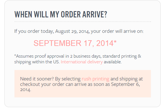 rubenmdeg Posted August 30, 2014 Share Posted August 30, 2014 Hello I'm looking for a module that can display the earliest possible date of delivery in the product page. I sell personalized items, wedding guest books, invitations, boxes and everything is customized...I want my clients to see the soonest day of delivery if they placed the order today.I want to be able to add on each product the estimated time of arrival, because some products take longer to produce.I'm attaching two good examples of what I'm looking for. Thanks in advance Ruben Link to comment Share on other sites More sharing options...