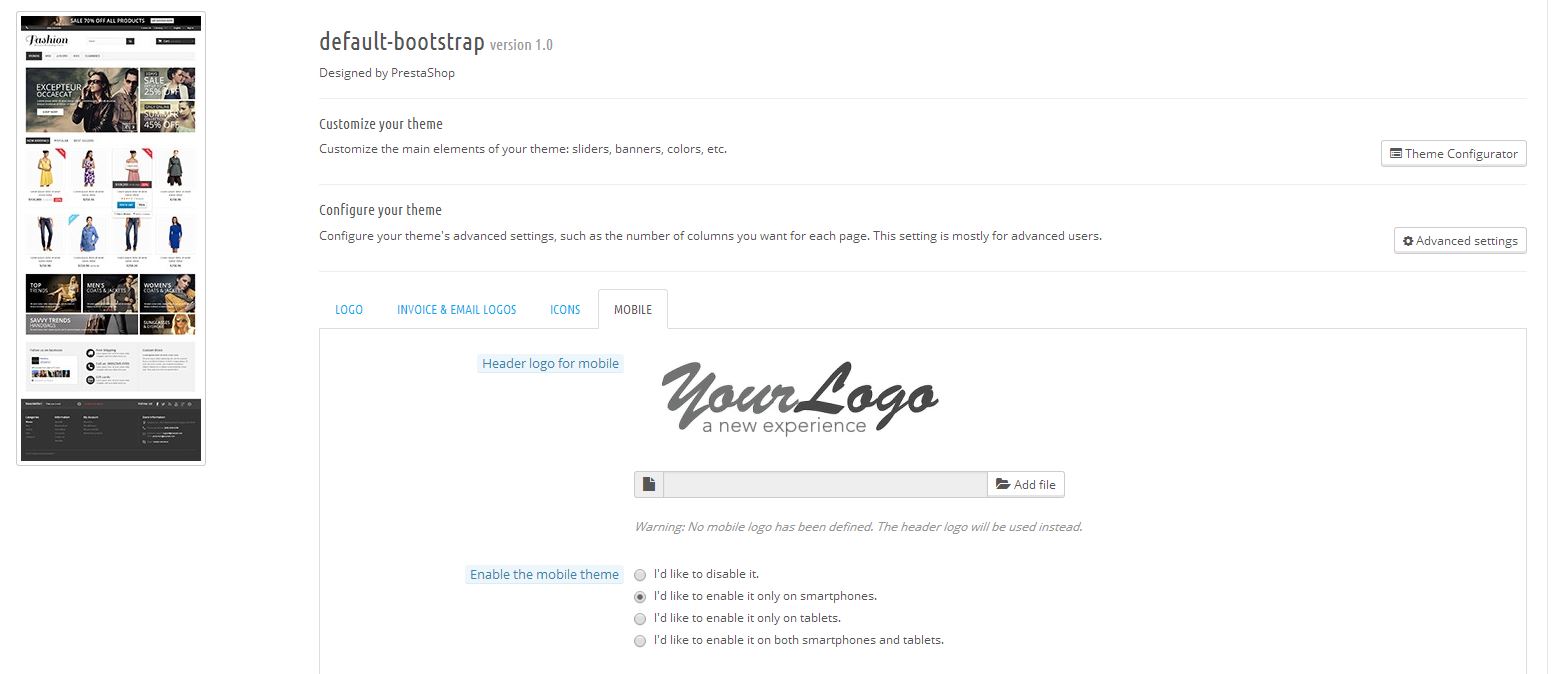 Filmo SVK Posted August 30, 2014 Share Posted August 30, 2014 Hi presta experts , I need help with prestashop 1.6. Where I disable mobile templates ? I try it in Preferences > Theme > and in submenu I select: MOBILE and I select: I'd like to disable it. but this configuration does not work. Thank you in advance for help. Sorry for my English if it is incorrect. Link to comment Share on other sites More sharing options...