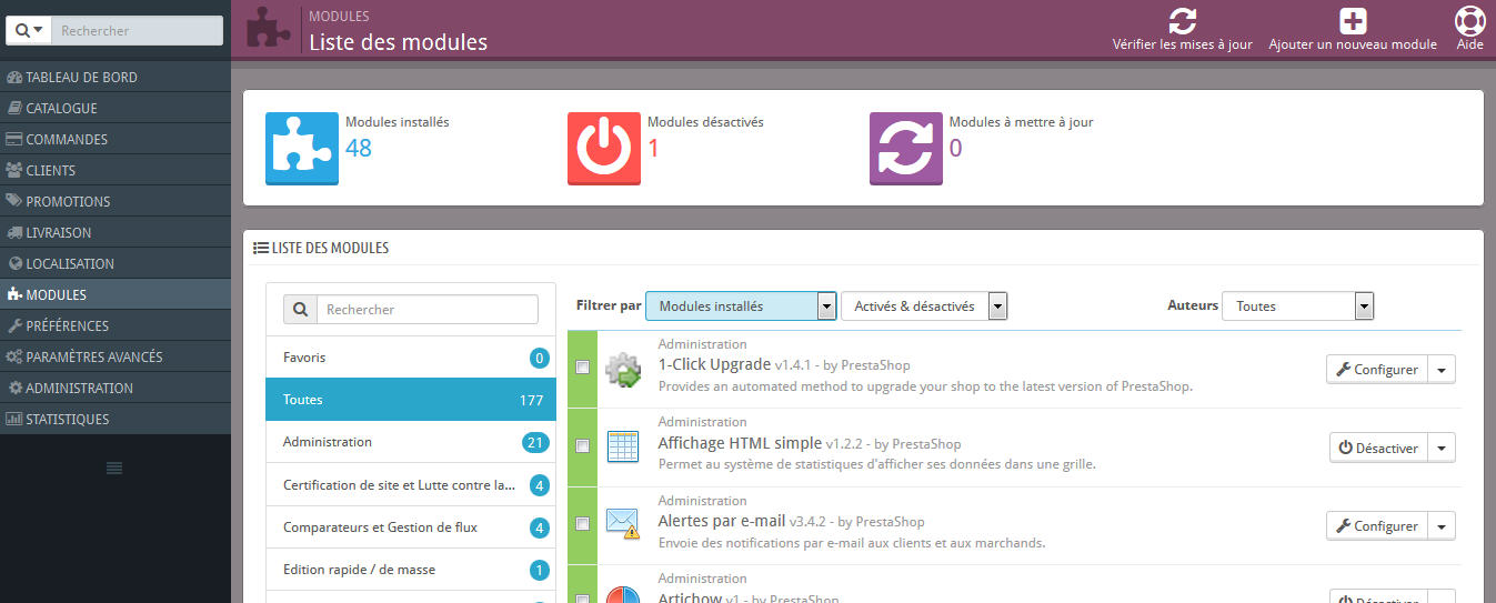 NemoPS Posted September 1, 2014 Share Posted September 1, 2014 In the modules list, below filters YOU ARE LOGGED INTO PRESTASHOP ADDONS Welcome [email protected] Sign out from PrestaShop Addons. Link to comment Share on other sites More sharing options...