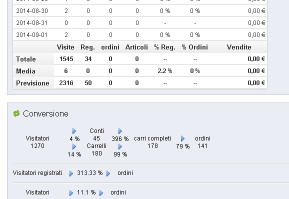 Papicchio Posted September 1, 2014 Share Posted September 1, 2014 Salve a tutti, ho un problema veramente critico... Ho impostato un sistema prestashop con 67 negozi (multinegozio). Su tutti i multinegozi sono arrivati (e sono stati gestiti) ordini. Quando vado in statistica a vedere come è andata, noto 140 carrelli totali (corretto) ma giorno per giorno mi dà tutto a 0. Non mi dice quanti carrelli per giorno, i margini, le vendite in valore, il nulla del nulla. Ho postato una immagine per darvi idea della cosa Qualcuno è nella mia stessa situazione? dove operare? Link to comment Share on other sites More sharing options...