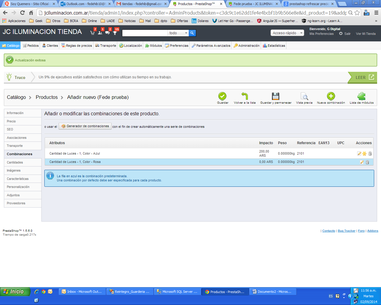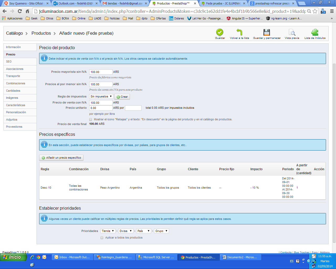 Tengo un problema con un producto. Voy a citar un ejemplo para que sea mas facil. Doy de alta un producto "fede prueba" con el precio de 100.