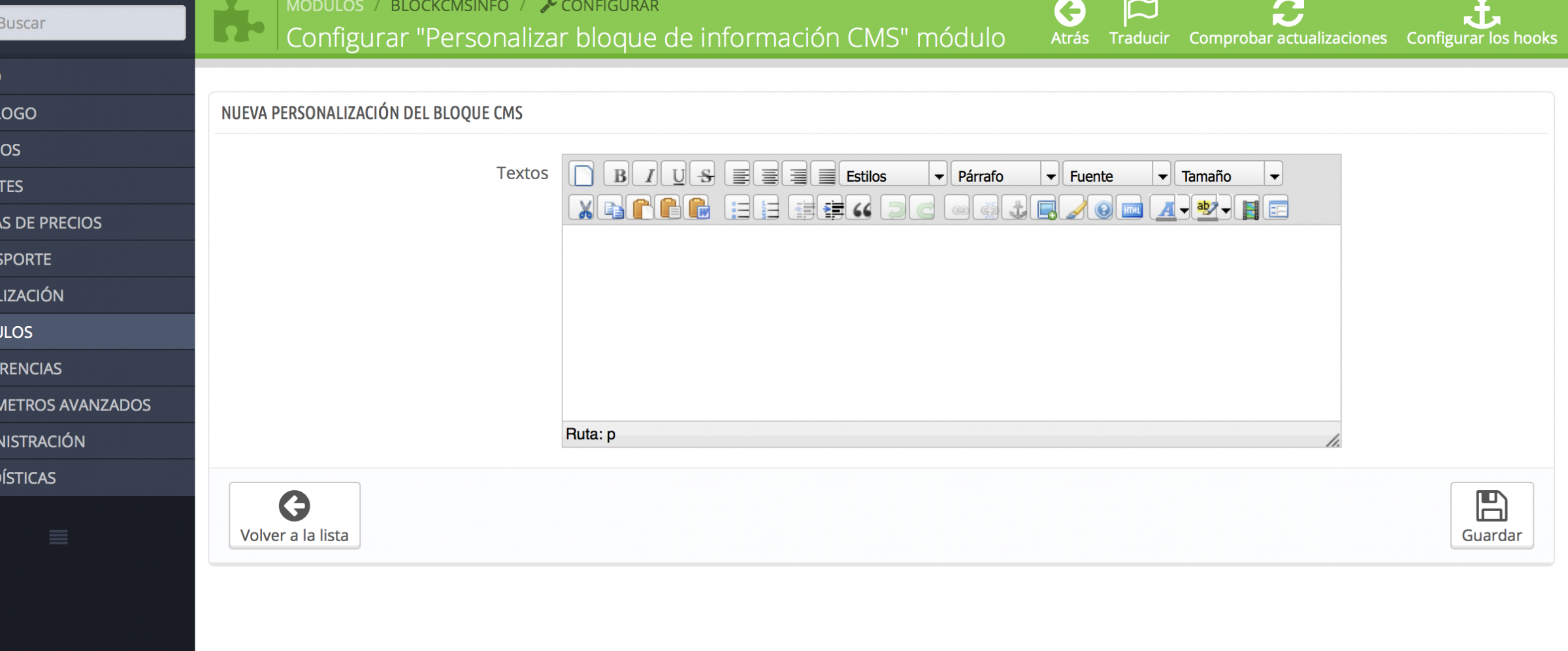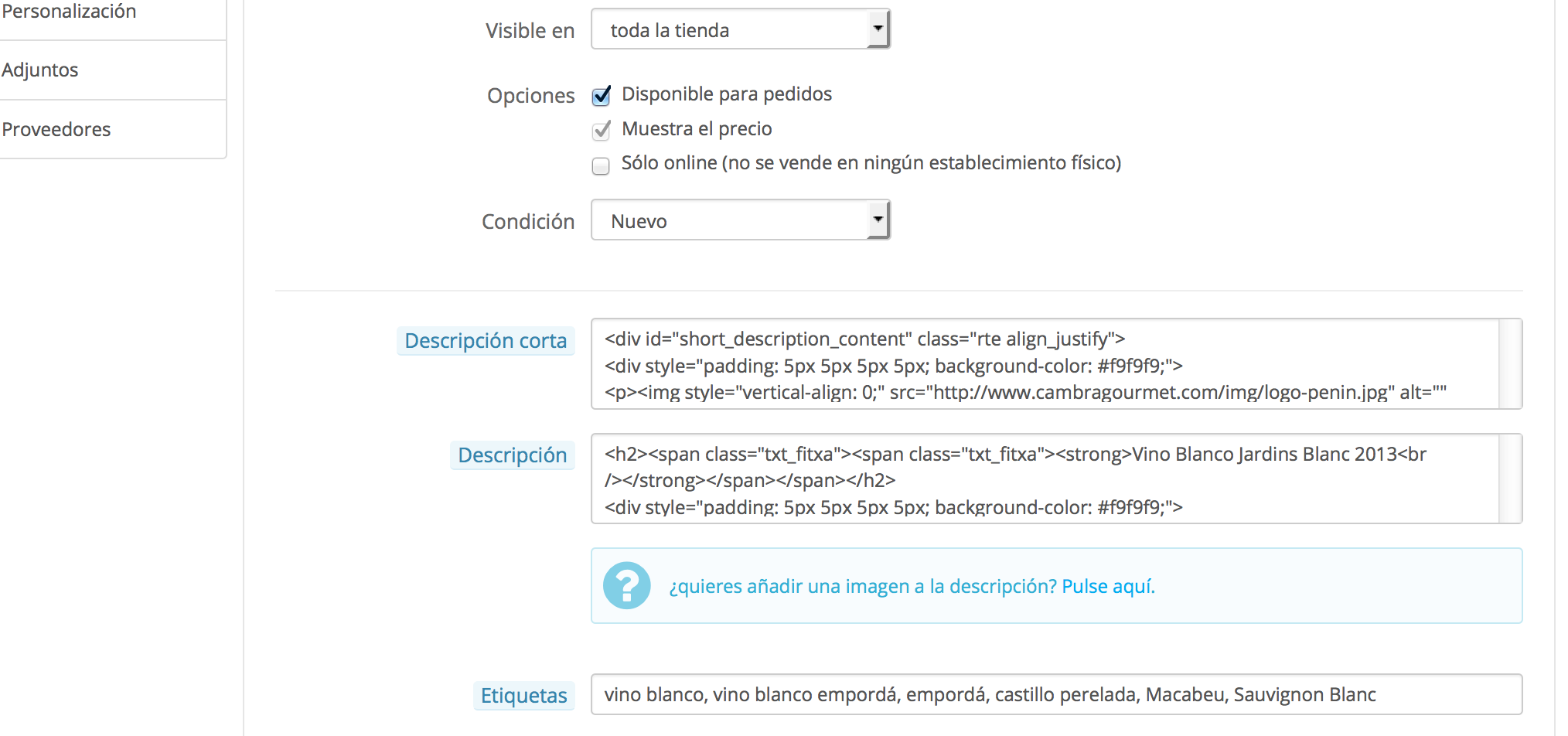 dp_graficoweb Posted September 3, 2014 Share Posted September 3, 2014 Hola chicos/as ! Al actualizar mi tienda a la versión 1.6 me ha surgido unos problemas que no logro solucionar. El editor de texto de todas las secciones y modulos no funciona bien y parece no ser el de la versión 1.6 Además en la ficha de producto no me aparece las secciones cuando hago click y tambien ocurre algo extraño con el editor. En las pruebas que he realizado en local todo ha salido perfecto, pero al pasar a entorno real no se que ha ocurrido. He adjunto algunas imágenes. Un saludo y gracias! Link to comment Share on other sites More sharing options...