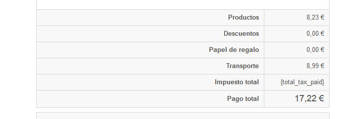 IvanJBG Posted September 5, 2014 Author Share Posted September 5, 2014 Hola, estoy teniendo un problema al recibir el correo de confirmacion de pedido cuando utilizo el metodo de pago de contrareembolso + tasas, y es que en el resumen del correo cuando va a mostrar el valor del campo "impuesto total" el valor mostrado es el nombre de la variable que almacena el valor ("total_tax_paid"), porque pasa esto? Si lo hago por transferencia no me sucede, Gracias! ADJUNTO IMAGEN Nadie? Link to comment Share on other sites More sharing options...