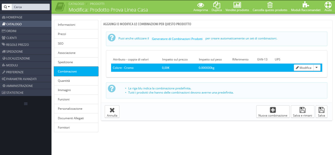 Dopo aver aggiunto un prodotto ed in seguito aver associato ad esso una combinazione, nella scheda del dettaglio prodotto il relativo prezzo compare a 0.00€!!!