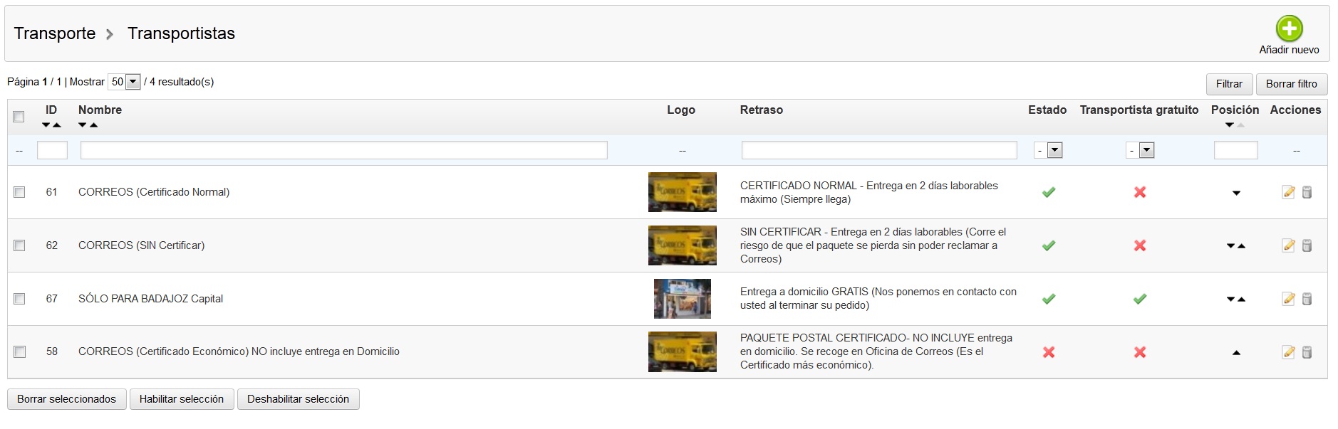 marvarez Posted September 7, 2014 Share Posted September 7, 2014 (edited) Buenas tardes, tengo PS 1.5 y 3 transportes registrados y mi web es www.accesoriosparaconsolasymas.es Transportes dados de alta: -Certificado -Sin Certificar -Entrega a domicilio El problema es que cuando los clientes realizan el pedido y eligen la opción que más les interese en la primera pantalla, luego salta la pantalla de "elige tu dirección de envío" y en la tercera pantalla, para confirmar el pedido, otra vez hay que elegir el tipo de transporte, o mejor dicho, sale esa pantalla pero con la selección cambiada y dar lugar a errores. Mi pregunta es: Si en la primera pantalla/opción el cliente elige X transporte, ¿porqué no sale ya seleccionado el mismo en la tercera pantalla? Alguno se dan cuenta y lo cambian pero otros no y les "auto elige" el envío gratis. Espero haberme explicado :-))))) Gracias!! Edited September 7, 2014 by markezmarkez (see edit history) Link to comment Share on other sites More sharing options...