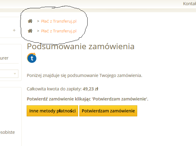 Mam zakupiony komercyjny szablon i w podsumowaniu płatności wtyczki Transferuj.pl mam zdublowany breadcrump jak na załączonym zdjęciu.
