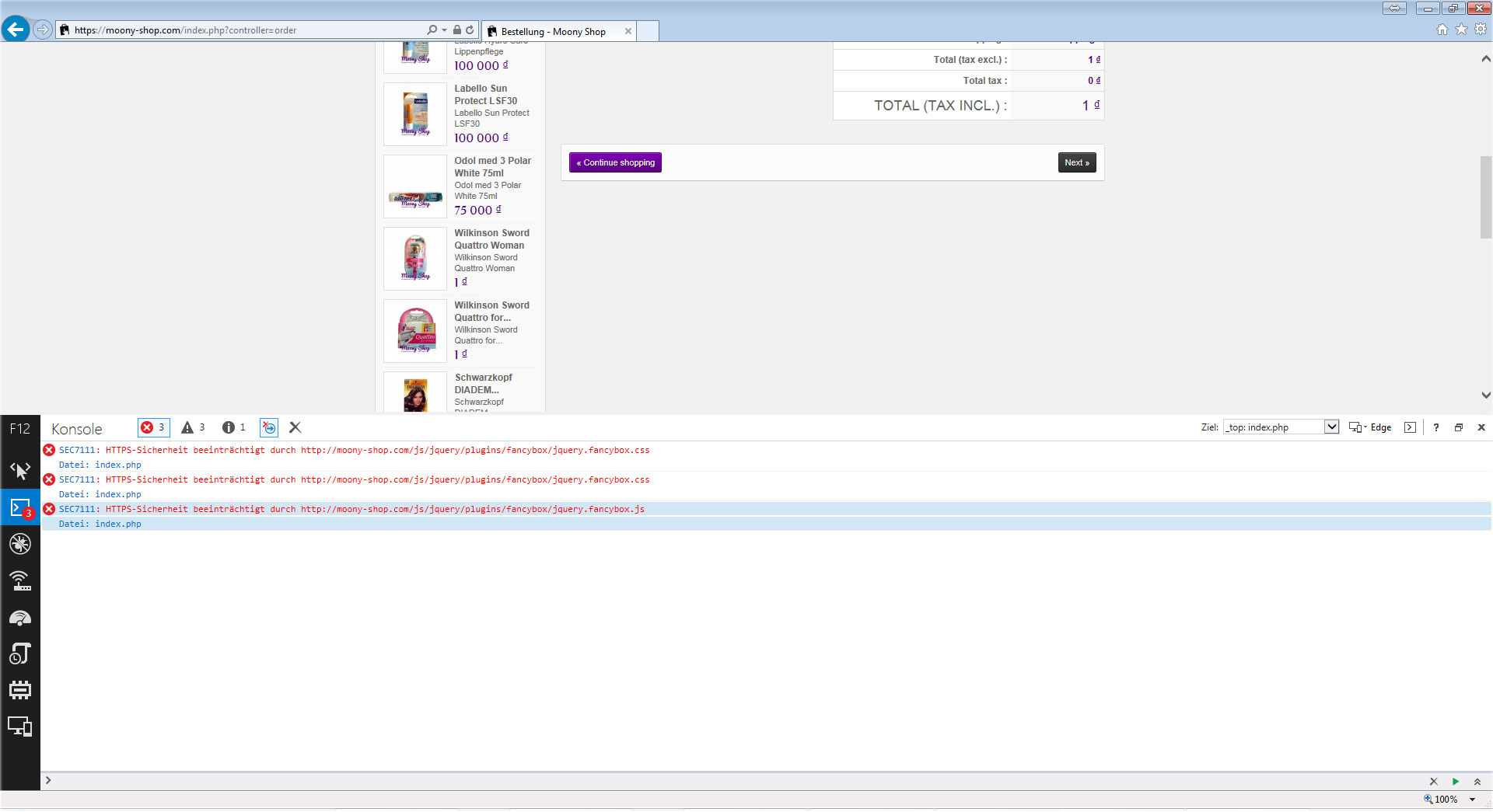KPeter Posted September 10, 2014 Share Posted September 10, 2014 (edited) Hallo, ich habe intensiv nach Lösungen gesucht, leider noch keine gefunden. Ich habe Webspace bei 1und1 und habe mein Zertifikat auf die Shop Domain eingerichtet, im Shop habe ich Bestellvorgang https nutzen aktiviert. Die Browser zeigen mir an, das gemischte Inhalte vorliegen, ich hätte allerdings nun gern diese Meldung vermieden. IE zeigt mir an, das Fancybox per http aufgerufen wird, siehe Screenshot. Ich kann allerdings keine Lösung aus dem Inet herausgoogeln, um das Problem zu beheben. Ich hatte etwas gefunden, da wurde auf github eine COdeanpassung als Lösung gezeigt, doch als ich das umsetzen wollte war diese Anpassung bereits in meiner Shop Version standartmässig eingearbeitet. Nun weiß ich aktuell gerade nicht weiter, wo könnte ich nun ansetzen? Ich nutze Version 1.6.0.9 mit dem Template "Responsive Fragrance Template" aus dem Prestashop. Das Zertifikat habe ich auf die Domain moony-shop.com registriert, ohne www. Der Shop ist zur Zeit noch im Wartungsmodus. Danke schon mal Peter Edited September 10, 2014 by zumkalle (see edit history) Link to comment Share on other sites More sharing options...
