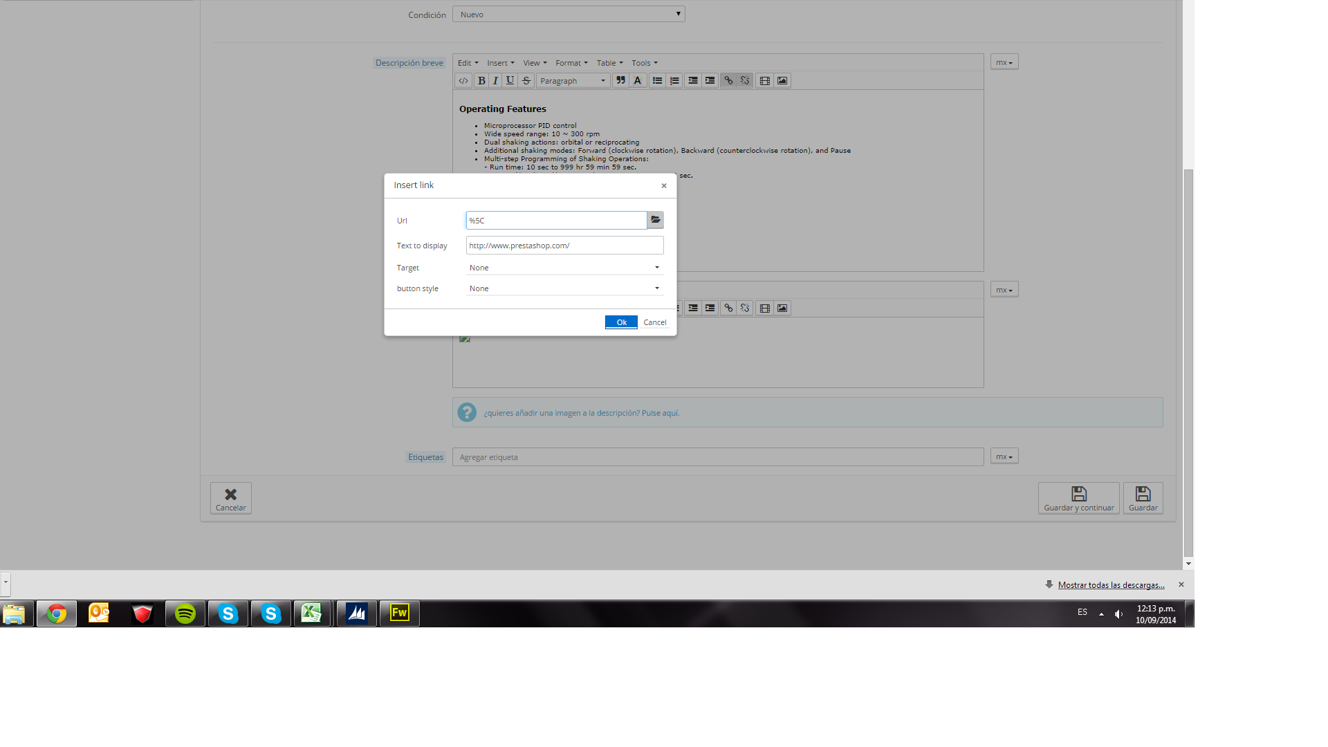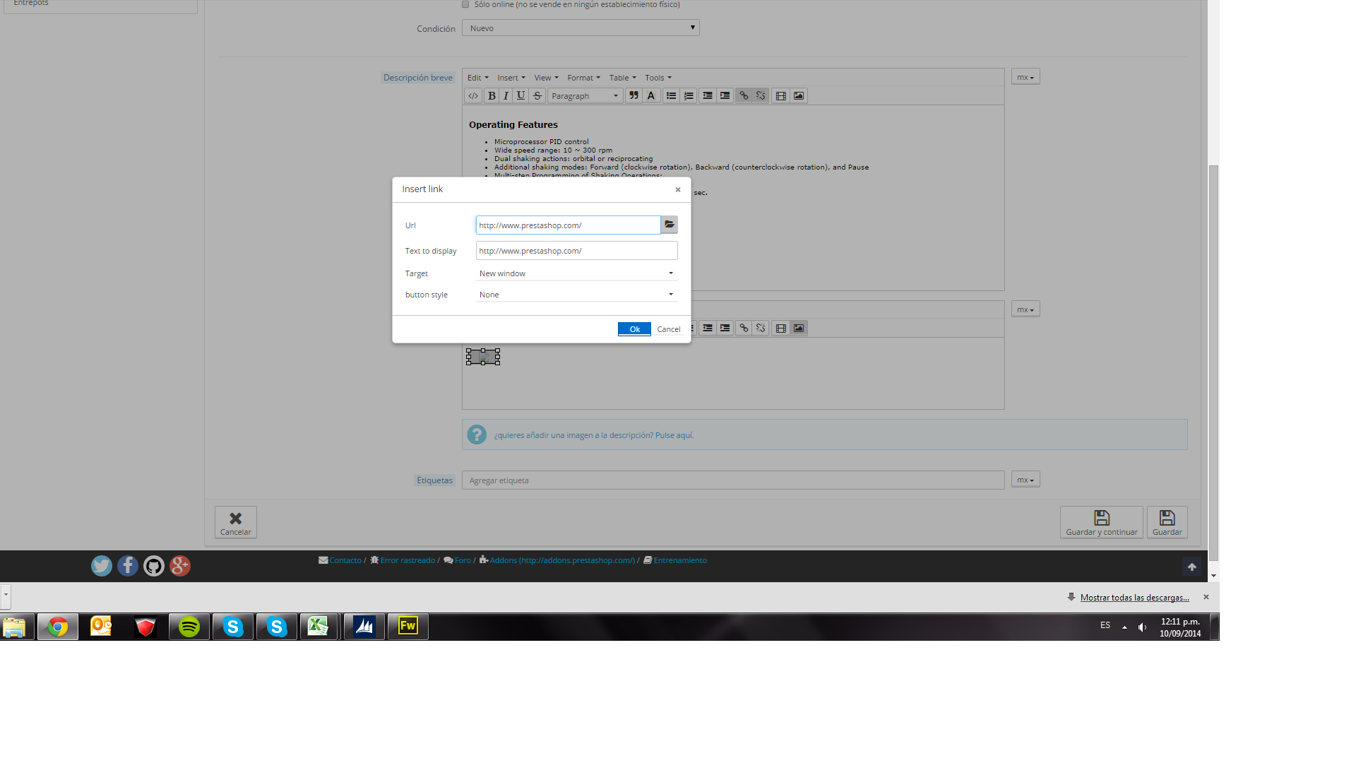 jeancgarciaq Posted September 14, 2014 Share Posted September 14, 2014 Cuando agrego una imagen o un link en la descripción del producto al parecer lo hace bien, pero cuando guardo los cambios me modifica La URL que puse por los siguientes caracteres: %5C adjunto las imágenes... un experto que me ayude de favor, muchas gracias de antemano. Prueba hacero Manual a ver si te lo cambia, haces clic en código </> está al lado de B en la barra de herramientas: Por ejemplo: <a href="dirección url">Texto a Mostrar</a> <a href="http://www.comercito.com">Comercito</a> Y si te funciona, hazlo manual temporalmente, mientras se consigue el bug y se corrige. 1 Link to comment Share on other sites More sharing options...