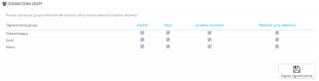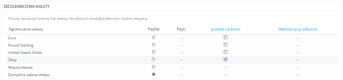 2. Jeżeli w ograniczeniach sklepu dam PayPal jako Waluta klienta to przy wysyłce zagranice i zmiany języku nawet na ENG nie widać w ogóle płatności paypal. I pisze, że nie ma zdeklarowanych form płatności.