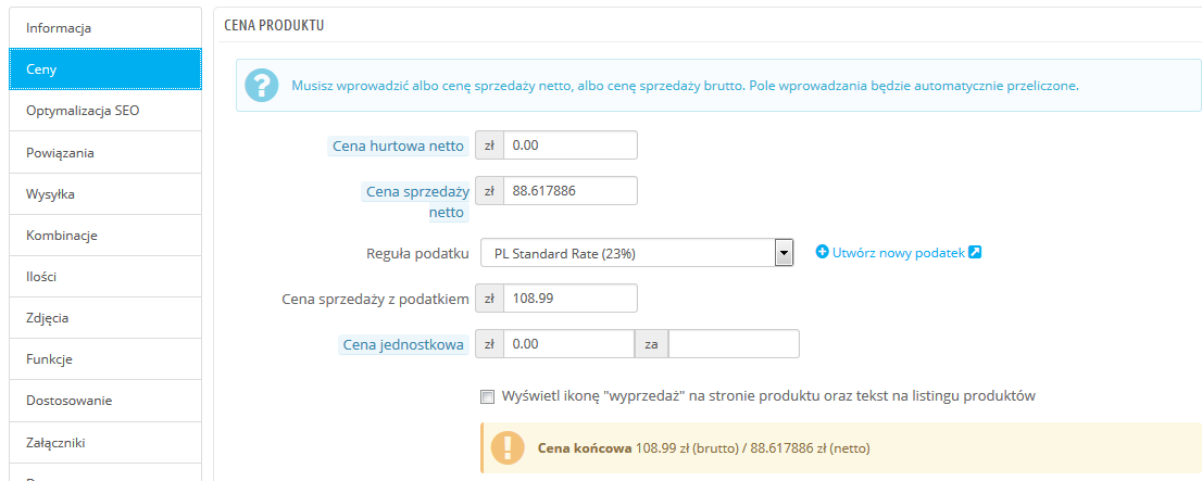 Mam włączone zaokrąglanie w dół i dla niektórych produktów wszystko jest ok, a dla niektórych w kategorii wyświetla dobrze np. 108,99 a po wejściu w produkt już 109zł i nie wiem skąd to się mogło wziąć. Porównywałem 2 produkty w sklepie ten co się dobrze wyświetla i ten co źle i są tak samo skonfigurowane i nie mam pojęcia o co kaman?