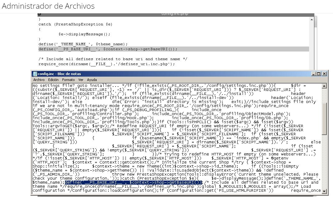 jcdli Posted September 18, 2014 Author Share Posted September 18, 2014 (edited) Aqui pantallazo de ambos archivos, el que menciona el error al abrir ahora mi página de administración Notice: Constant __PS_BASE_URI__ already defined in /home/u654588250/public_html/config/config.inc.php on line 107 seleccionado tanto en local como en remoto. Parece que pone exactamente lo mismo. Lo que no sé qué habría que cambiar, si hay que cambiar algo, claro. Una pregunta: Este error tendrá algo que ver con lo de la multitienda? Tal y como está ahora el backoffice, he intentado acceder a esta sección, y deshabilitar la multitienda (creo recordar que la tenía activada en localhost) y no acepta el cambio. Además, al despelgar las tiendas aparaece: 1. Default 2. daler-rowney-online 3. daler-rowney-online Edited September 18, 2014 by jcdli (see edit history) Link to comment Share on other sites More sharing options...