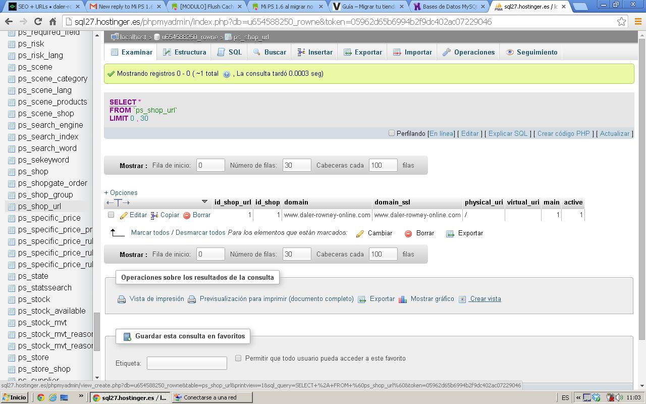 nadie Posted September 17, 2014 Share Posted September 17, 2014 En el panel de la tienda, en SEO y URLs - Dominio, Dominio SSL y Directorio Raiz aparecd lo mismo qeu en ps_shop_url. ¿Lo tienes tal como te adjunto en la siguiente captura: ? Link to comment Share on other sites More sharing options...