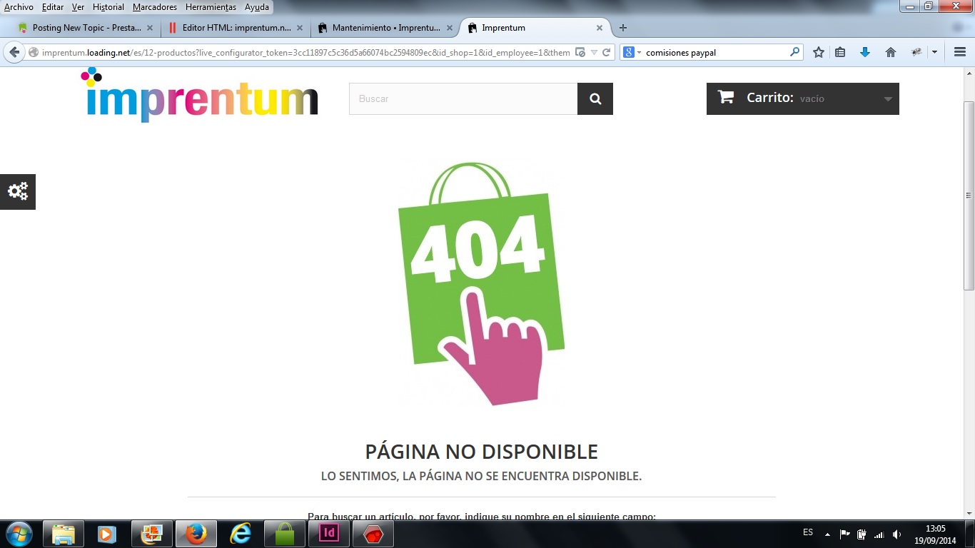 victor1305 Posted September 19, 2014 Share Posted September 19, 2014 (edited) Buenas tardes estoy haciendo pruebas para sacar la tienda lo antes posible, pero me ha pasado algo que nunca me habia pasado... Me registro inicio sesion y al darle a una de las categorias (la cual modifique el html el otro dia y que sin iniciar sesion se ve perfectamente) me aparece un error y no se ve nada.. pongo el nombre del producto y me aparece, intento efectuar la compra y al darle a ir a la caja se queda bloqueado... Que puedo hacer? Edito: acabo de ver que no hace falta iniciar sesion para q salga ese error en esa categoria Edited September 19, 2014 by victor1305 (see edit history) Link to comment Share on other sites More sharing options...