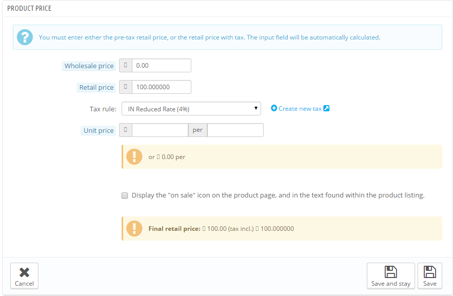 1>> In image retail price with tax input field is not display ..