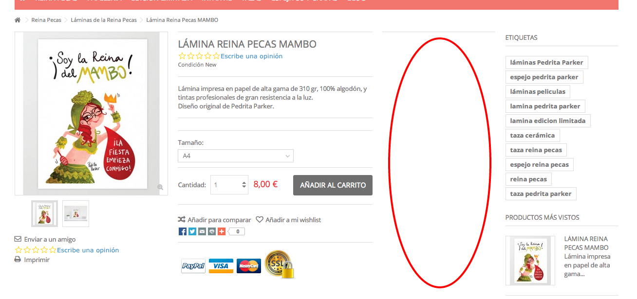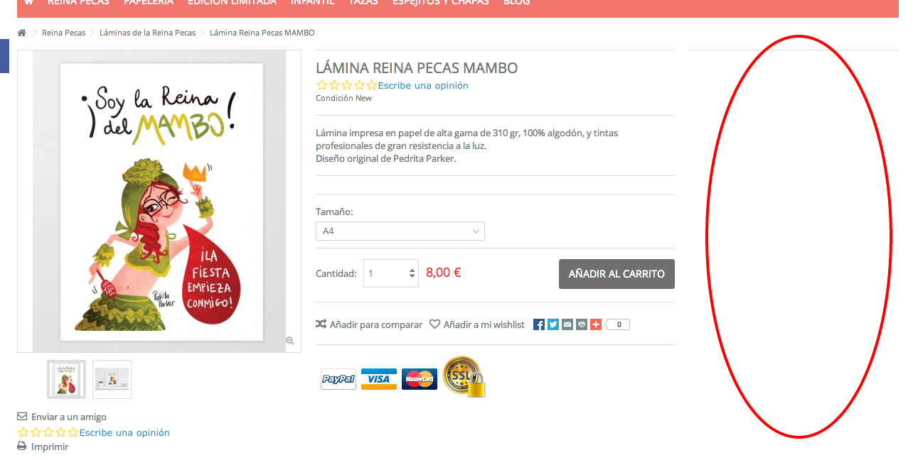 Jseron Posted September 21, 2014 Share Posted September 21, 2014 (edited) Hola bueno primero me presento, soy Javi y es la primera vez que escribo en el foro para ver si me podéis ayudar, ya que el siguiente problema no lo he encontrado en ningún hilo y soy completamente novato con prestashop. La version de prestashop que utilizo es la 1.6.0.8 Resulta en el la ficha de producto me aparece un hueco a la derecha que no se como eliminar. El hueco es el que os marco en la imagen adjunta. No se trata de la columna de la derecha, porque al entrar en los ajustes avanzado del tema puedo poner y quitar dicha columna sin que influya con este hueco. El caso es que en el código generado en la ficha de producto me inserta el siguiente div que es el que provoca el hueco vacio: <div class="pb-right-column col-xs-12 col-md-3 col-lg-3"> <div class=pb-right-column-content"></div> </div> Supongo que esto lo introduce el header.tpl pero no tengo ni idea. Por favor, ¿alguien sabría como quitar ese hueco de la ficha de producto? Muchas gracias de antemano. Edited September 22, 2014 by Jseron (see edit history) Link to comment Share on other sites More sharing options...