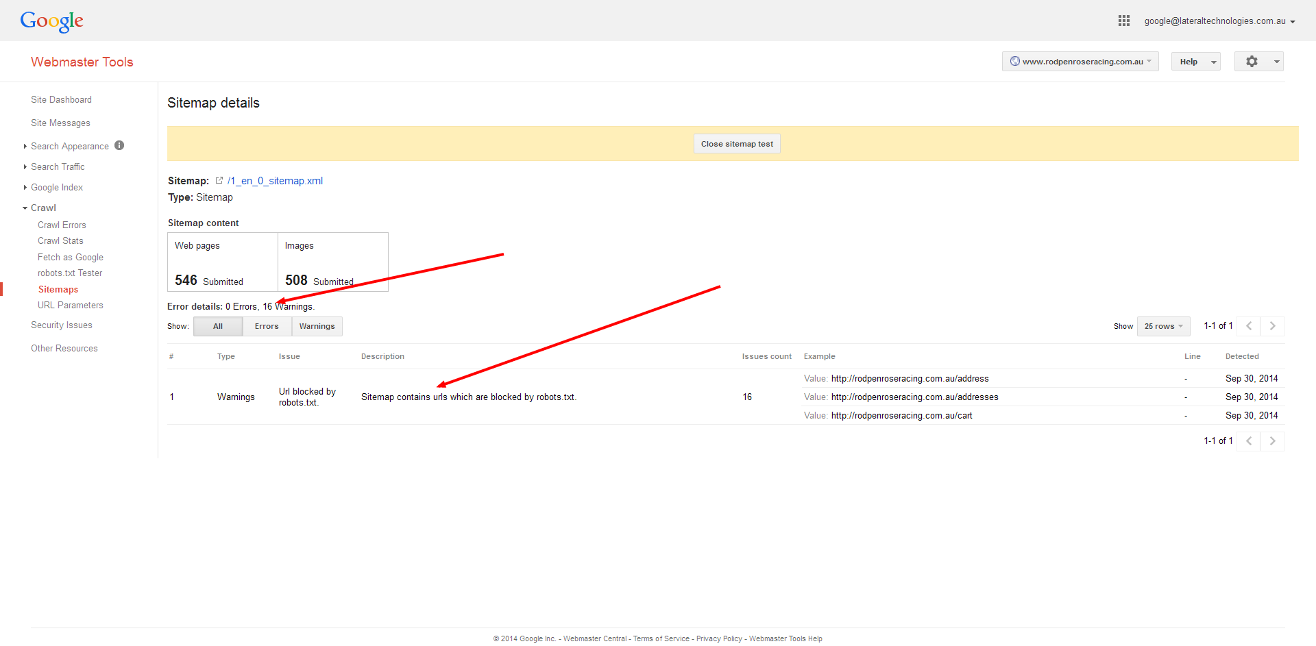 lateral Posted September 30, 2014 Author Share Posted September 30, 2014 Hi Nemo, I recently regenerate my Google Sitemap and resubmitted it. It said that there are 16 warning messages.....do I need to worry about these? Please see attached screen shot Hi Nemo, I recently regenerate my Google Sitemap and resubmitted it. It said that there are 16 warning messages.....do I need to worry about these? Please see attached screen shot Link to comment Share on other sites More sharing options...
