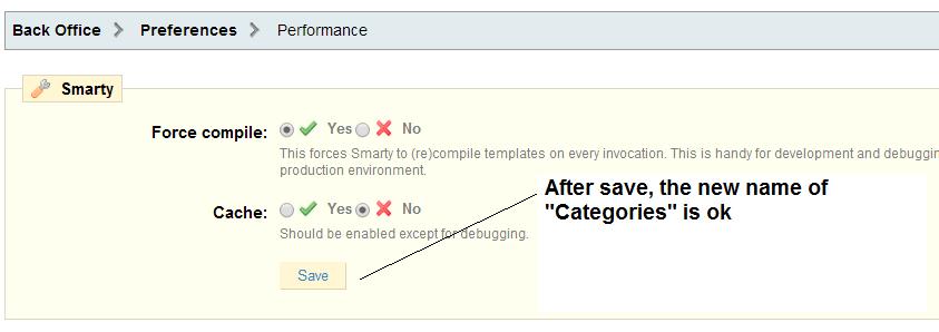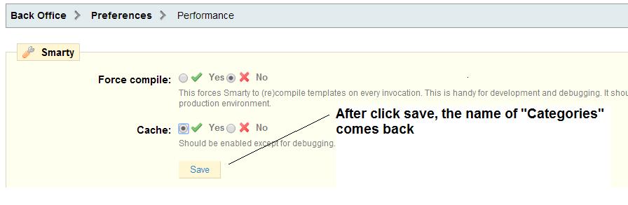 Then when I set Force Compile No and Cache Yes :  the name of "Categories" comes back.