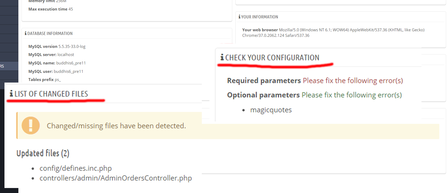 tonytoh Posted September 28, 2014 Author Share Posted September 28, 2014 Hi Mac, Thanks for reply. I have change the line define to true ('_ PS_MODE_DEV_', false) But two have errors. Link to comment Share on other sites More sharing options...