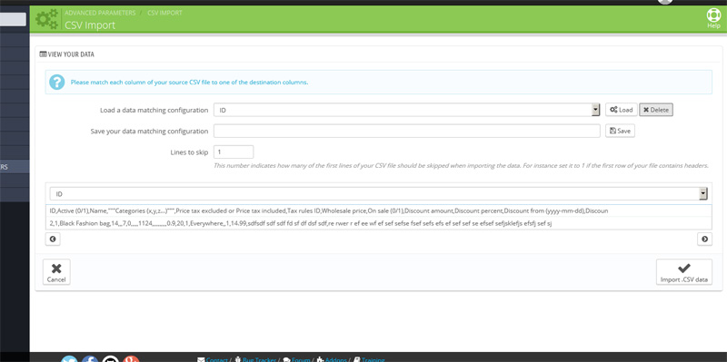 agenceweb74 Posted October 2, 2014 Share Posted October 2, 2014 In the "View Your Data" page it has load, delete & save. So to redo the association don't I have to delete the old associations first? You need to delete only if your patterns of association are wrong (ie. the import does not work). When you arrive on that page, you can select a previously used pattern then click load and the association is ok. On this page you need: either to click on load in order to get a valid association either manually associate each product column either use a CSV file that match the preset associations. I do not remember if on some versions of Prestashop the association is "preset" without clicking on load. Link to comment Share on other sites More sharing options...