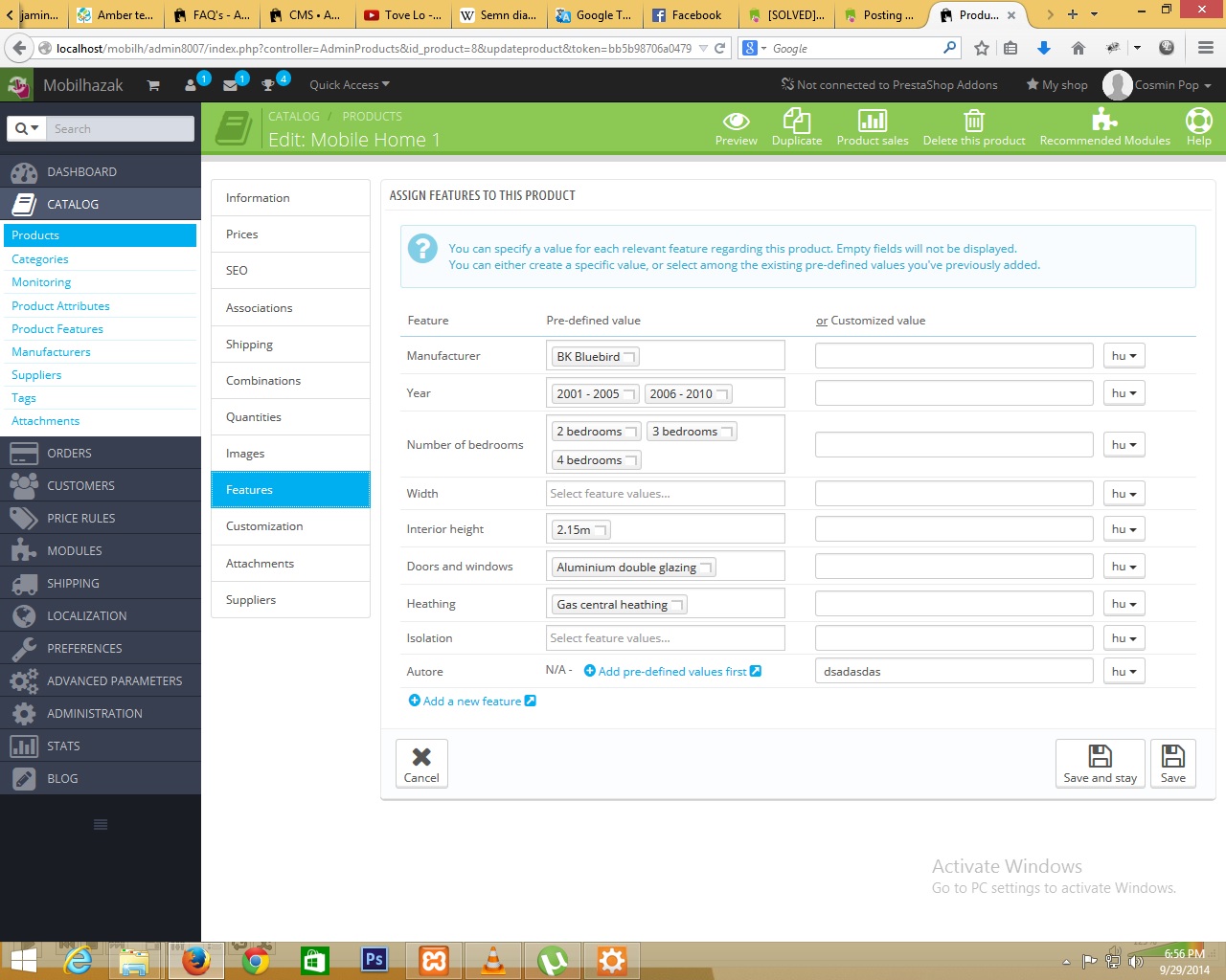 2. to drop the primary keys for id_feature and id_product in the ps_feature_product table in database.