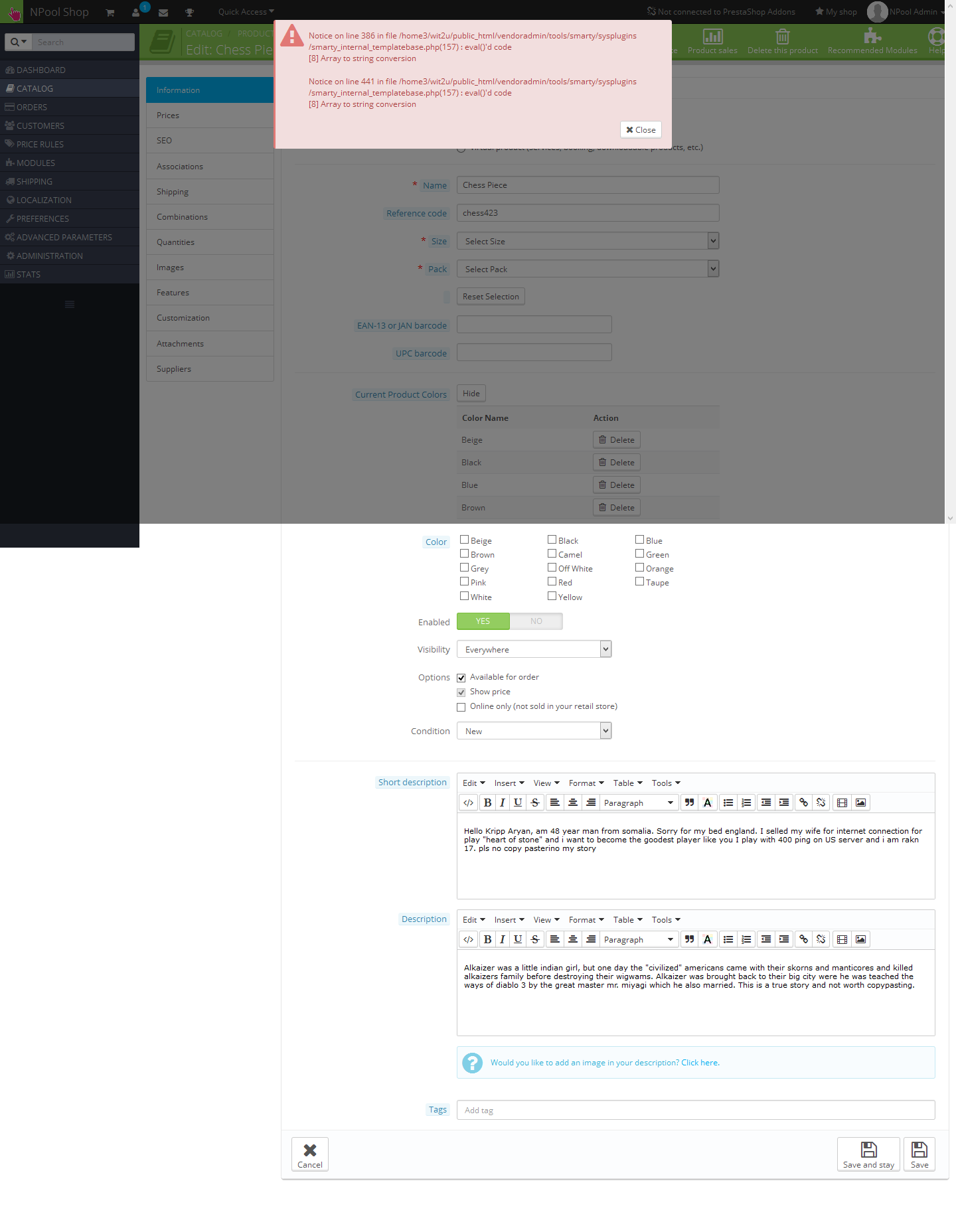 chesspiece423 Posted September 30, 2014 Share Posted September 30, 2014 I had no idea what this is. Notice on line 386 in file /home3/wit2u/public_html/vendoradmin/tools/smarty/sysplugins/smarty_internal_templatebase.php(157) : eval()'d code[8] Array to string conversionNotice on line 441 in file /home3/wit2u/public_html/vendoradmin/tools/smarty/sysplugins/smarty_internal_templatebase.php(157) : eval()'d code[8] Array to string conversion I migrated from localserver to webserver. Then that error above appeared. Everything is working fine within the localserver. After migration, lot of errors arise. Please help. Link to comment Share on other sites More sharing options...