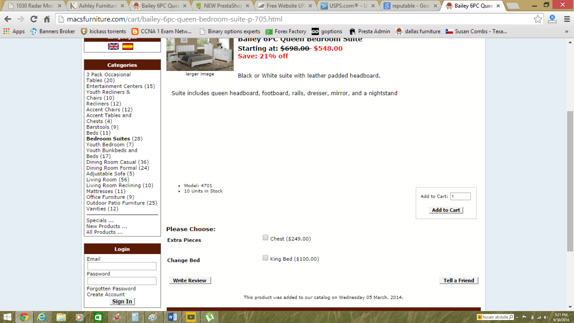 dwelch022 Posted September 30, 2014 Share Posted September 30, 2014 Hello everyone! I was wondering how do I add, add-on item to a product. For example, I'm selling a 5 piece bedroom set and I want my customers to be able to choose if they want to add on a chest or not. I've submitted a picture from another website to show what I'm talking about. Link to comment Share on other sites More sharing options...