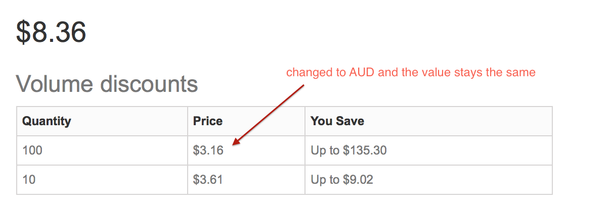 BZZYBI Posted October 2, 2014 Share Posted October 2, 2014 Hi Guys I got a problem, not sure if its only me. I am using MultiStore and Multi Currency Latest version 1.6.0.9 My default currency is GBP and my second currency is AUD. The volume discounts are being calculated correctly when viewing with my default currency GBP but when I switch the AUD the discount amount does not change or actually changes to AUD for split second and back to the same GBP value. I have attached some screen shots Anybody having the same problem. Thanks G Link to comment Share on other sites More sharing options...