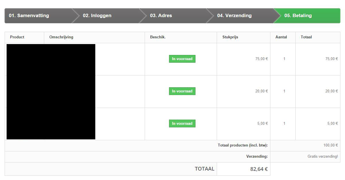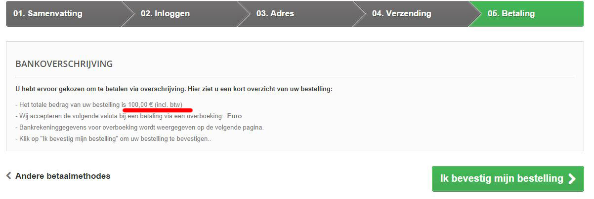 WBXIV Posted October 4, 2014 Share Posted October 4, 2014 (edited) Hi all, First topic and really new to prestashop... All seems to work fine with product selection and price After choosing my delivery method step 5 displays a strange totall (see attachment) Totall is €82,64 instead of €100 When I open the banktransfer to do the payment all is correct again. (see attachment2) This will be confusing for the customer I guess. Does anyone know where the €82,64 comes from? Thanks Using Prestashop 1.6.0.9 default bootstrap Edited October 8, 2014 by WBXIV (see edit history) Link to comment Share on other sites More sharing options...