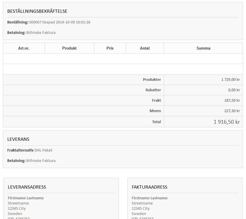 Källans Posted October 9, 2014 Share Posted October 9, 2014 (edited) Jag jobbar på en ny shop i 1.6.0.9 och upptäckte att bekräftelsemailen till kund efter lagd order inte innehåller några varor eller artikelnummer. Summa för produkter, frakt, moms och total är där de ska. (se skärmdumpen)Pdf:erna fungerar som de ska för både faktura/kvitto och leveranssedel. I min andra shop som kör 1.6.0.6 fungerar allt som det ska, så jag undrar om det är en bugg i senaste versionen eller om jag har petat för mycket i filerna, vet dock inte vilka filer som styr just detta parti i mailet så jag har inte kunnat jämföra dem. Några tips eller idéer? /Weronicha Edited October 9, 2014 by Källan (see edit history) Link to comment Share on other sites More sharing options...