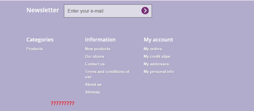 tsvetanovah Posted October 10, 2014 Author Share Posted October 10, 2014 make sure cms block module hook to footer position Thank you, indobusana, I already checked this - it is hooked.. Hello I think the easiest way is to change this info in: footer.tpl Paul I am using the Default bootstrap theme. Do you mean that I should edit the footer.tpl that is in the /themes/default-bootstrap folder? What should I edit in it? Link to comment Share on other sites More sharing options...