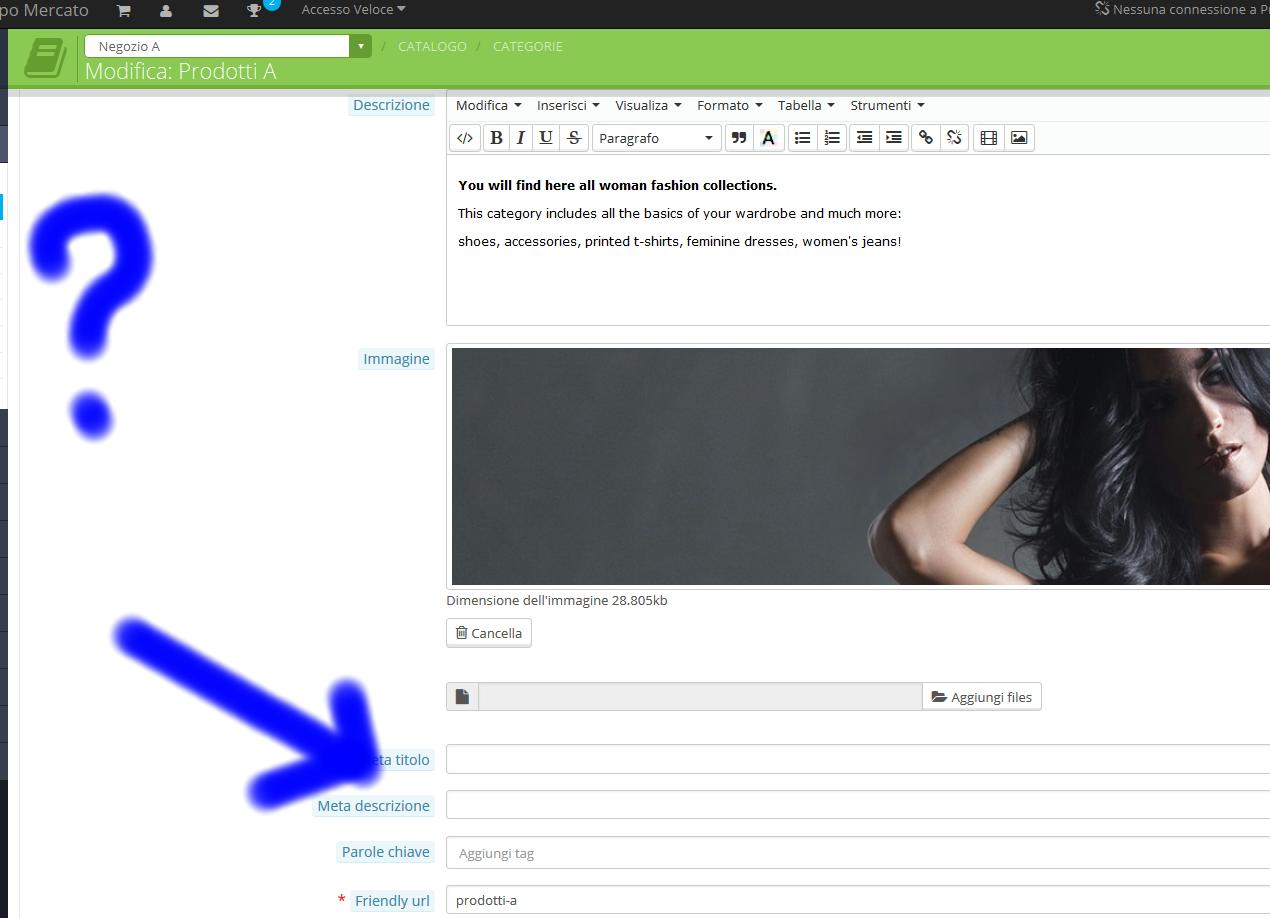 limpido Posted October 10, 2014 Share Posted October 10, 2014 (edited) Ho un piccolo problema e non ho capito cosa ho combinato.. Nel menu principale vi e' l'opportunita di inserire anche delle immagini (vedi allegato front.jpg), all'inizio quando ho iniziato a lavorare al progetto, mi dava l'opportunità di inserirle e di rimuoverle tramite la parte admin. Dopo un po' ho ripreso il mio progetto che volevo apportare delle modifiche, ma ho notato che l'area anteprime in categorie quando entro in admin non esiste piu'... Vi allego altre due immagini: Quella originale di prestashop presa dal sito demo: presta-jpg Quellla mia presa dal sito che sto costruendo: mio.jpg Spero di essere stato piu' chiaro possibile. Mi date qualche delucidazione ? PS il mio progetto e strutturato in multinegozio, però vi assicuro che prima funzionava Ho un piccolo problema e non ho capito cosa ho combinato.. Nel menu principale vi e' l'opportunita di inserire anche delle immagini (vedi allegato front.jpg), all'inizio quando ho iniziato a lavorare al progetto, mi dava l'opportunità di inserirle e di rimuoverle tramite la parte admin. Dopo un po' ho ripreso il mio progetto che volevo apportare delle modifiche, ma ho notato che l'area anteprime in categorie quando entro in admin non esiste piu'... Vi allego altre due immagini: Quella originale di prestashop presa dal sito demo: presta-jpg Quellla mia presa dal sito che sto costruendo: mio.jpg Spero di essere stato piu' chiaro possibile. Mi date qualche delucidazione ? PS il mio progetto e strutturato in multinegozio, però vi assicuro che prima funzionava Edited November 26, 2014 by limpido (see edit history) Link to comment Share on other sites More sharing options...