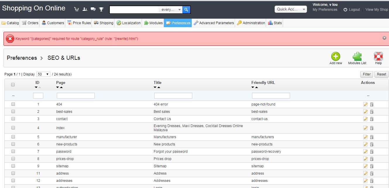 vivianlwy Posted October 11, 2014 Share Posted October 11, 2014 After install clean url module v0.42, all category page cannot see anything and got error. Route to category: {rewrite}.html is not work. Keyword "{categories}" required for route "category_rule" (rule: "{rewrite}.html") How to make all category working as usual? How to remove category on the url? I want to change http://shoppingononline.com/Wedding-Dresses/Wedding-Gowns/red-wedding-gown-ruffle-backless.html to http://shoppingononline.com/red-wedding-gown-ruffle-backless.html. Link to comment Share on other sites More sharing options...