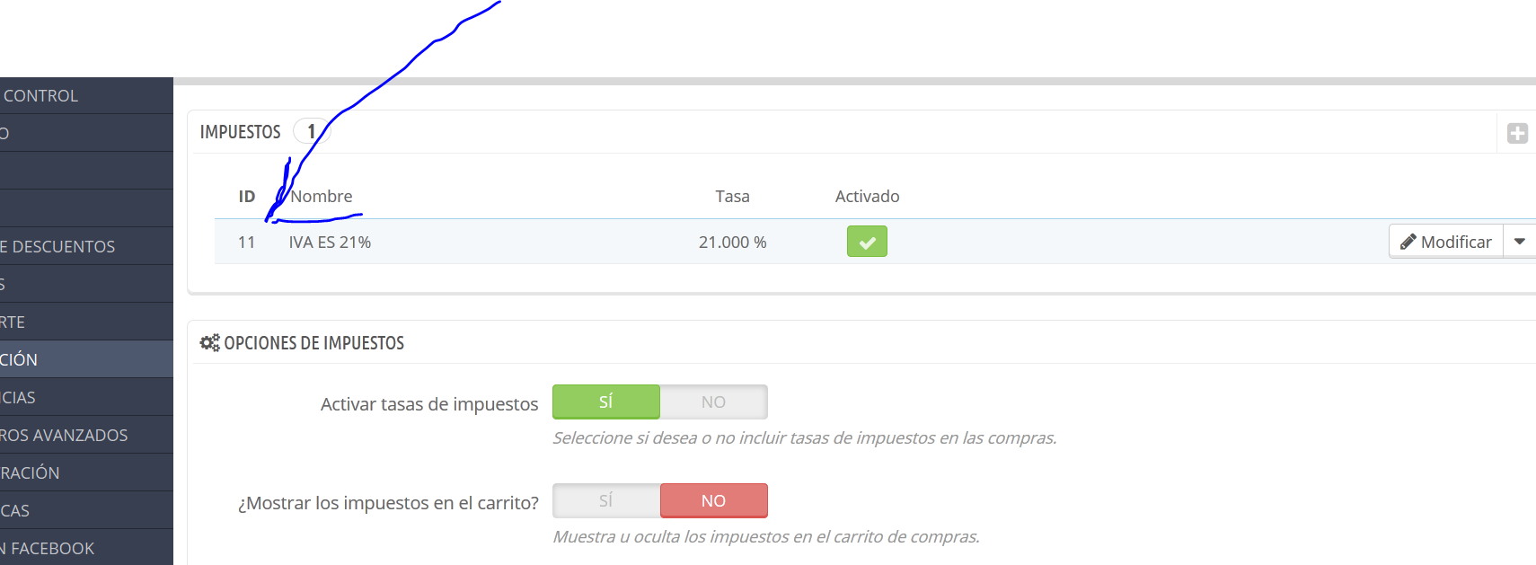 M-MAX audio Posted October 12, 2014 Author Share Posted October 12, 2014 Ya te lo comentado donde aquí: update ps_product set id_tax_rules_group = ID_REGLA_IMPUESTOS; update ps_product_shop set id_tax_rules_group = ID_REGLA_IMPUESTOS; digo: ID_REGLA_IMPUESTOS colocas el numero id. Pero hablo del ID, de la regla de impuestos (localización -> reglas de impuestos) no del id de la pestaña localización -> impuestos Bueno en mi caso tengo en los dos el ID 11 tanto en impu. como en regla, los dos con un solo impuesto "IVA es 21%" con id 11 en ambos. Link to comment Share on other sites More sharing options...