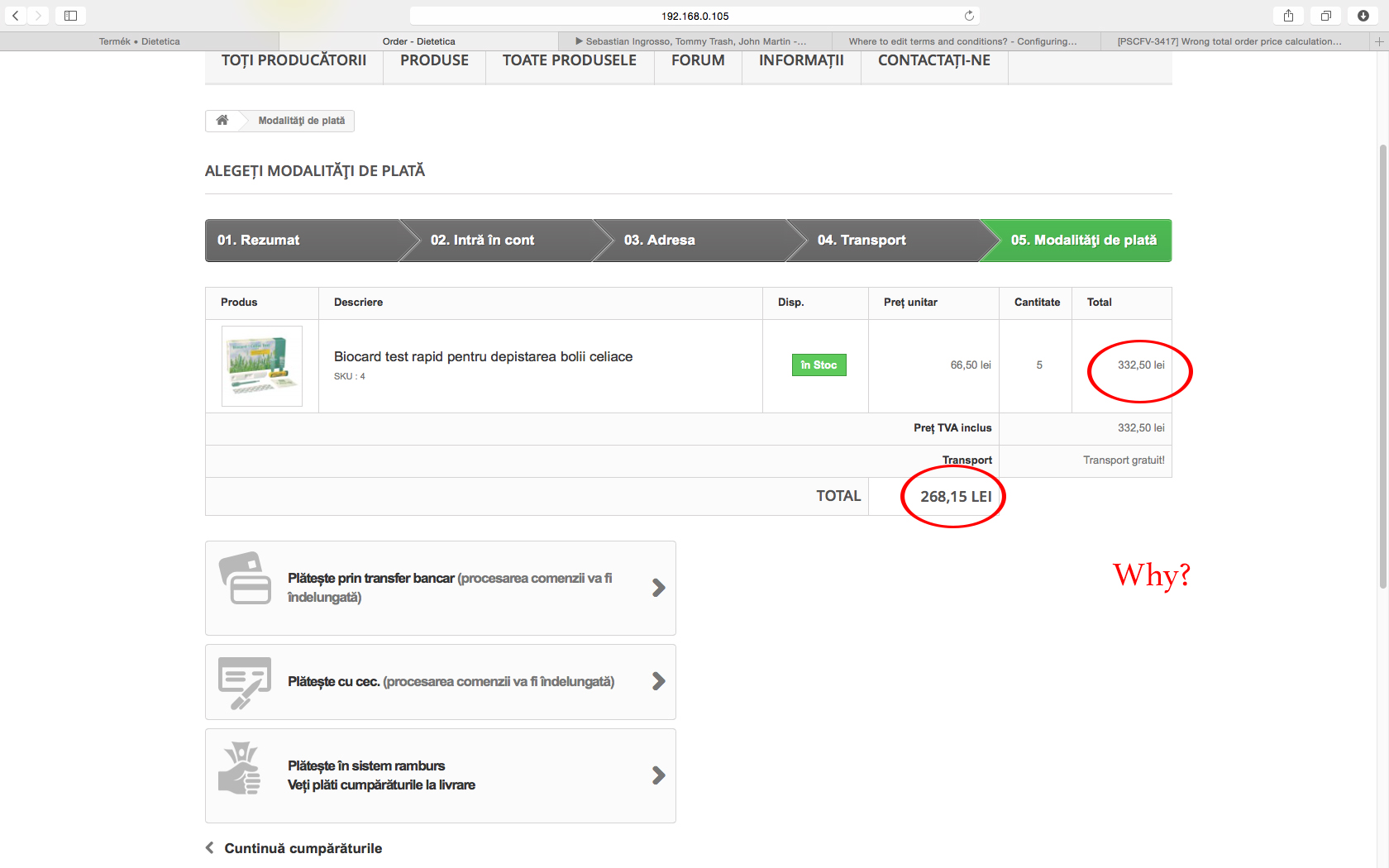 farrvince Posted October 12, 2014 Share Posted October 12, 2014 (edited) Hello Today my problem is that I have wrong total price in the last step of the payment. I will atach an image: So there is Total price (332.50 lei) and under the table there is Total again, but it is only 268.15 lei! I don't know how can I solve this, please help me!! Thank you! Edited October 12, 2014 by farrvince (see edit history) Link to comment Share on other sites More sharing options...