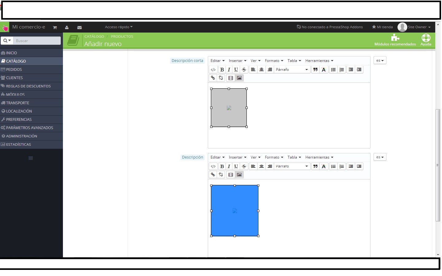 drbisquerra Posted October 12, 2014 Share Posted October 12, 2014 (edited) Buenas, el caso es que cuando voy a insertar las imagenes de los productos no se ven, e probado con PNG, JPG, e habilitado (Usar png si la imagen base está en formato png) que puede ser? Edited October 12, 2014 by drbisquerra (see edit history) Link to comment Share on other sites More sharing options...