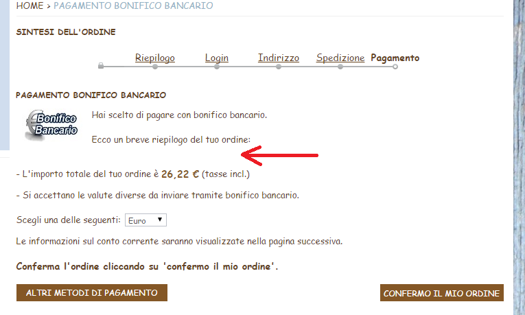 marissa_bari Posted October 13, 2014 Share Posted October 13, 2014 CIAO RAGAZZI, POTETE AIUTARMI? AL 4 STEP DELL'ORDINE MI COMPARE LA SCRITTA: Ecco un breve riepilogo del tuo ordine: ma poi tutto bianco sotto ancora esce l'ammontare dell'importo etc etc come faccio a far comparire il riepilogo appunto? guardando un pò sul web ho trovato questa solutione ma non so dove inserire il codice risolutivo.... questo è il codice in ordercontroller.php <?php /* * 2007-2011 PrestaShop * * NOTICE OF LICENSE * * This source file is subject to the Open Software License (OSL 3.0) * that is bundled with this package in the file LICENSE.txt. * It is also available through the world-wide-web at this URL: * http://opensource.or...ses/osl-3.0.php * If you did not receive a copy of the license and are unable to * obtain it through the world-wide-web, please send an email * to [email protected] so we can send you a copy immediately. * * DISCLAIMER * * Do not edit or add to this file if you wish to upgrade PrestaShop to newer * versions in the future. If you wish to customize PrestaShop for your * needs please refer to http://www.prestashop.com for more information. * * @author PrestaShop SA <[email protected]> * @copyright 2007-2011 PrestaShop SA * @version Release: $Revision: 6823 $ * @license http://opensource.or...ses/osl-3.0.php Open Software License (OSL 3.0) * International Registered Trademark & Property of PrestaShop SA */ ControllerFactory::includeController('ParentOrderController'); class OrderControllerCore extends ParentOrderController { public $step; public function init() { parent::init(); $this->step = (int)(Tools::getValue('step')); if (!$this->nbProducts) $this->step = -1; } public function preProcess() { global $isVirtualCart, $orderTotal; parent::preProcess(); /* If some products have disappear */ if (!self::$cart->checkQuantities()) { $this->step = 0; $this->errors[] = Tools::displayError('An item in your cart is no longer available for this quantity, you cannot proceed with your order.'); } /* Check minimal amount */ $currency = Currency::getCurrency((int)self::$cart->id_currency); $orderTotal = self::$cart->getOrderTotal(); $minimalPurchase = Tools::convertPrice((float)Configuration::get('PS_PURCHASE_MINIMUM'), $currency); if (self::$cart->getOrderTotal(false) < $minimalPurchase && $this->step != -1) { $this->step = 0; $this->errors[] = Tools::displayError('A minimum purchase total of').' '.Tools::displayPrice($minimalPurchase, $currency). ' '.Tools::displayError('is required in order to validate your order.'); } if (!self::$cookie->isLogged(true) AND in_array($this->step, array(1, 2, 3))) Tools::redirect('authentication.php?back='.urlencode('order.php?step='.$this->step)); if ($this->nbProducts) self::$smarty->assign('virtual_cart', $isVirtualCart); } public function displayHeader() { if (!Tools::getValue('ajax')) parent::displayHeader(); } public function process() { parent::process(); /* 4 steps to the order */ switch ((int)$this->step) { case -1; self::$smarty->assign('empty', 1); break; case 1: $this->_assignAddress(); break; case 2: if(Tools::isSubmit('processAddress')) $this->processAddress(); $this->autoStep(); $this->_assignCarrier(); break; case 3: //Test that the conditions (so active) were accepted by the customer $cgv = Tools::getValue('cgv'); if (Configuration::get('PS_CONDITIONS') AND (!Validate::isBool($cgv))) Tools::redirect('order.php?step=2'); if(Tools::isSubmit('processCarrier')) $this->processCarrier(); $this->autoStep(); /* Bypass payment step if total is 0 */ if (($id_order = $this->_checkFreeOrder()) AND $id_order) { if (self::$cookie->is_guest) { $email = self::$cookie->email; self::$cookie->logout(); // If guest we clear the cookie for security reason Tools::redirect('guest-tracking.php?id_order='.(int)$id_order.'&email='.urlencode($email)); } else Tools::redirect('history.php'); } $this->_assignPayment(); break; default: $this->_assignSummaryInformations(); break; } } private function processAddressFormat() { $addressDelivery = new Address((int)(self::$cart->id_address_delivery)); $addressInvoice = new Address((int)(self::$cart->id_address_invoice)); $invoiceAddressFields = AddressFormat::getOrderedAddressFields($addressInvoice->id_country); $deliveryAddressFields = AddressFormat::getOrderedAddressFields($addressDelivery->id_country); self::$smarty->assign(array( 'inv_adr_fields' => $invoiceAddressFields, 'dlv_adr_fields' => $deliveryAddressFields)); } public function displayContent() { global $currency; parent::displayContent(); self::$smarty->assign(array( 'currencySign' => $currency->sign, 'currencyRate' => $currency->conversion_rate, 'currencyFormat' => $currency->format, 'currencyBlank' => $currency->blank, )); switch ((int)$this->step) { case -1: self::$smarty->display(_PS_THEME_DIR_.'shopping-cart.tpl'); break; case 1: $this->processAddressFormat(); self::$smarty->display(_PS_THEME_DIR_.'order-address.tpl'); break; case 2: self::$smarty->display(_PS_THEME_DIR_.'order-carrier.tpl'); break; case 3: self::$smarty->display(_PS_THEME_DIR_.'order-payment.tpl'); break; default: self::$smarty->display(_PS_THEME_DIR_.'shopping-cart.tpl'); break; } } public function displayFooter() { if (!Tools::getValue('ajax')) parent::displayFooter(); } /* Order process controller */ public function autoStep() { global $isVirtualCart; if ($this->step >= 2 AND (!self::$cart->id_address_delivery OR !self::$cart->id_address_invoice)) Tools::redirect('order.php?step=1'); $delivery = new Address((int)(self::$cart->id_address_delivery)); $invoice = new Address((int)(self::$cart->id_address_invoice)); if ($delivery->deleted OR $invoice->deleted) { if ($delivery->deleted) unset(self::$cart->id_address_delivery); if ($invoice->deleted) unset(self::$cart->id_address_invoice); Tools::redirect('order.php?step=1'); } elseif ($this->step >= 3 AND !self::$cart->id_carrier AND !$isVirtualCart) Tools::redirect('order.php?step=2'); } /* * Manage address */ public function processAddress() { if