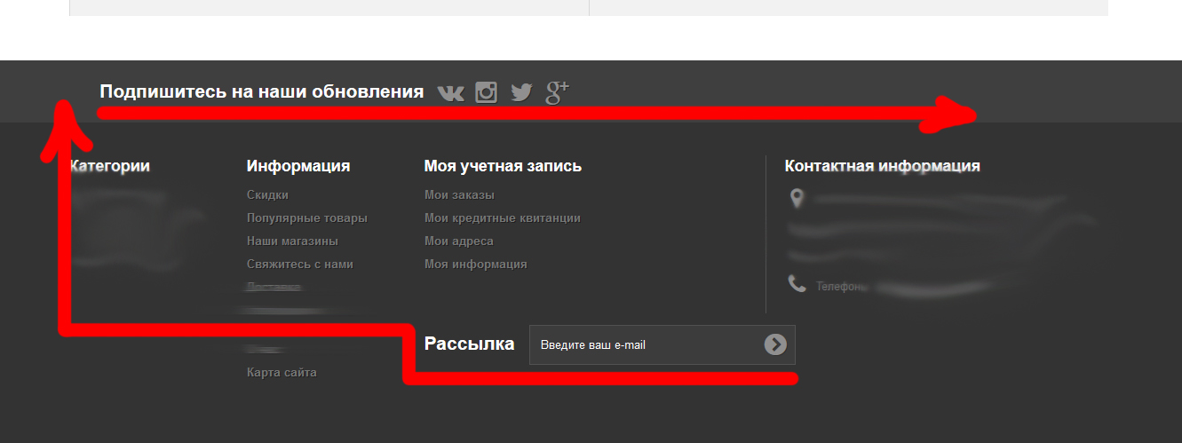 VincentVega Posted October 14, 2014 Author Share Posted October 14, 2014 Поменять позиции модулей которые выведены в хуке footer, в админке модули -> расположение модулей далее ctrl+F ищем по слову footer, находим нужный хук и меняем позиции вывода модулей в этом хуке. Удивляюсь, как я не наткнулся на эту функцию за последние 2 часа. Я перерыл уже весь интернет и чуть было не научился программировать. Решение проблемы было слишком простым) Спасибо. Link to comment Share on other sites More sharing options...