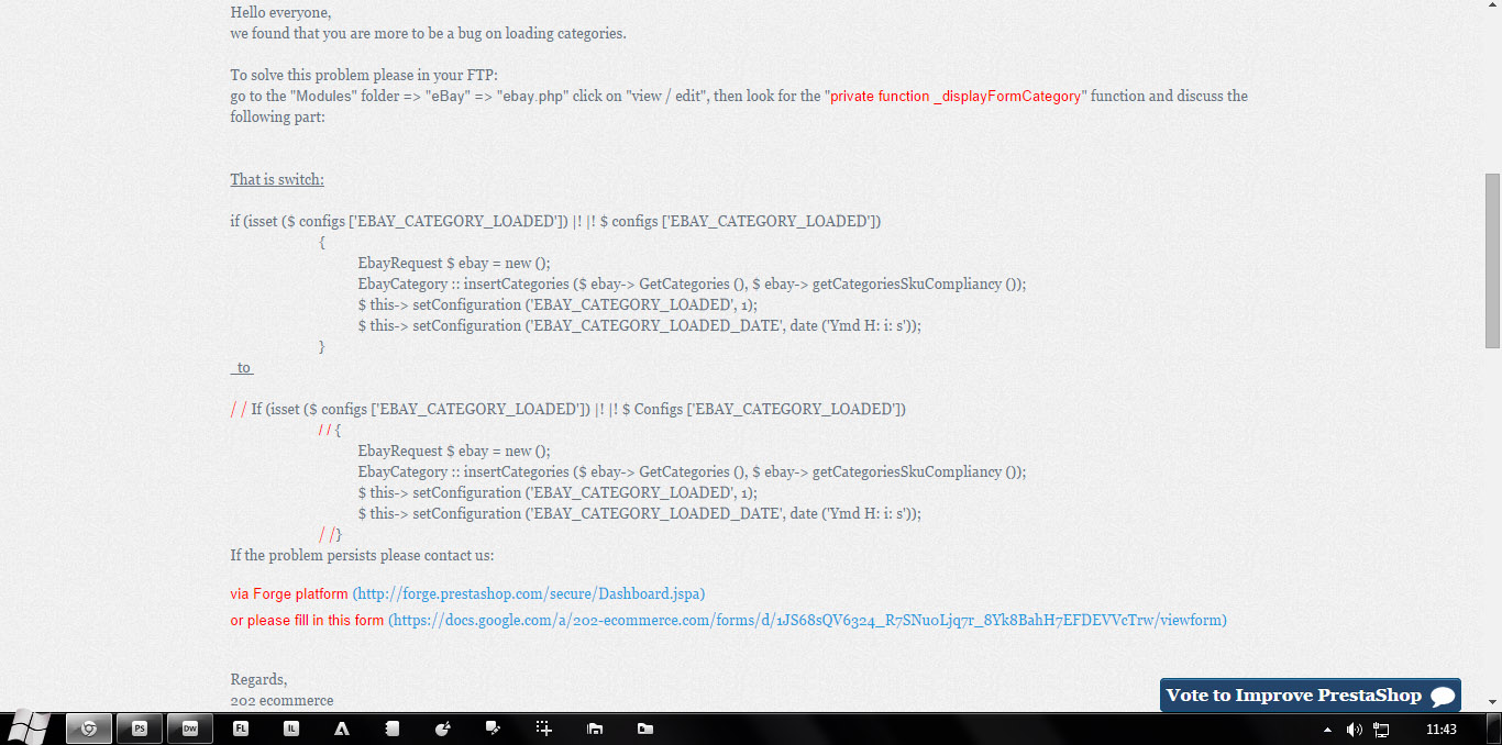 365 Lighting Posted October 16, 2014 Share Posted October 16, 2014 Hello, I'm unable to allocate my products to the required sub categories. I only have the upper level category visible. See attached pictures for the error & my attempt to fix the problem. I did see a pinned topic regarding the categories not displaying however this was posted a while ago and I don't think it's now relevant with Version: 1.8.1. I attempted to update the code in ebay.php however I get a syntax error (I thought that // is meant for notes and not read by the browser). Please help as I've really cannot see any way around this problem. Link to comment Share on other sites More sharing options...