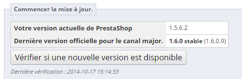 Quand je reviens sur le 1-Click upgrade, il affiche : "Votre version actuelle de PrestaShop : 1.5.6.2 alors que je suis en 1.6.0.9. J'imagine que l'upgrade n'ayant pas abouti, il n'a pas mis à jour cette info.
