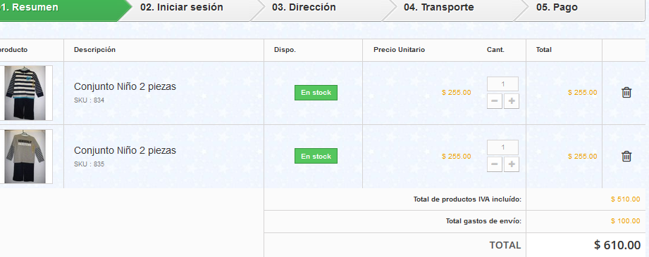 Jamonforyou Posted October 20, 2014 Share Posted October 20, 2014 Si pones de el proceso de pedido en un solo paso, se muestran correctamente ¿? Si, en un sólo paso sale perfecto. Me parece que lo voy a dejar entonces así y no me complico más. Muchísimas gracias. Link to comment Share on other sites More sharing options...