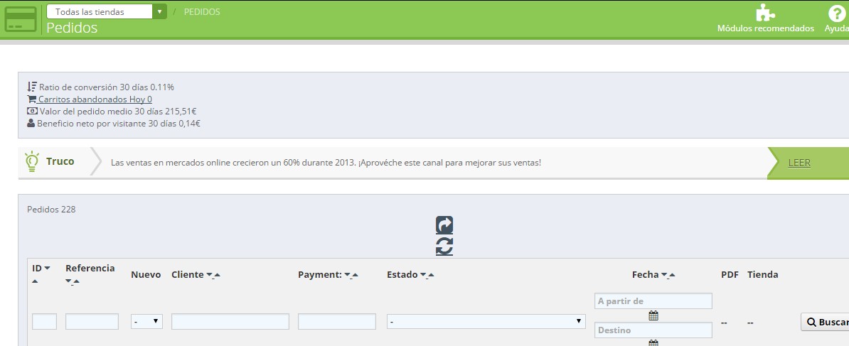 RaúlS Posted October 20, 2014 Share Posted October 20, 2014 Hola a todos, tras la migración a prestashop 1.6.x, todo funcionó a la perfección excepto la pestaña de Pedidos dentro del Backoffice: Todas las pestañas y páginas del Backoffice de mi prestashop funcionan a la perfección, todas excepto la "Lista de pedidos" y la "Detalles del pedido". Las funcionalidades van correctamente, pero el css (admin-theme.css) no es cargado correctamente y el aspecto que tiene la página es muy simple. Adjunto 2 pantallazos (como se ve la página de Pedidos actualmente y como se debería ver utilizando otra página del BackOffice) ¿Alguien podría decirme por qué falla esto? He buscado y buscado por foros, manuales, etc. pero no consigo encontrar con la solución. Muchas gracias. Un saludo Link to comment Share on other sites More sharing options...