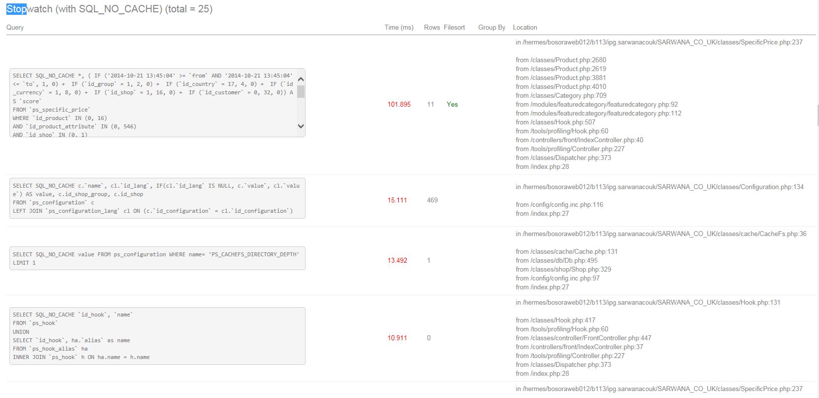 PrestaHeroes.com Posted October 21, 2014 Share Posted October 21, 2014 when anyone has slow shop. follow this to determine where slow 'part' might be. open file config/defines.inc.php set following to true | visit slow page(s) | collect profiling data (scroll down)...analyze. define('_PS_DEBUG_PROFILING_', false); tip: bo-->advanced parms-->performance-->set move java script bottom yes (make sure to test your shop functions)... until you do this, you will just be guessing... Link to comment Share on other sites More sharing options...
